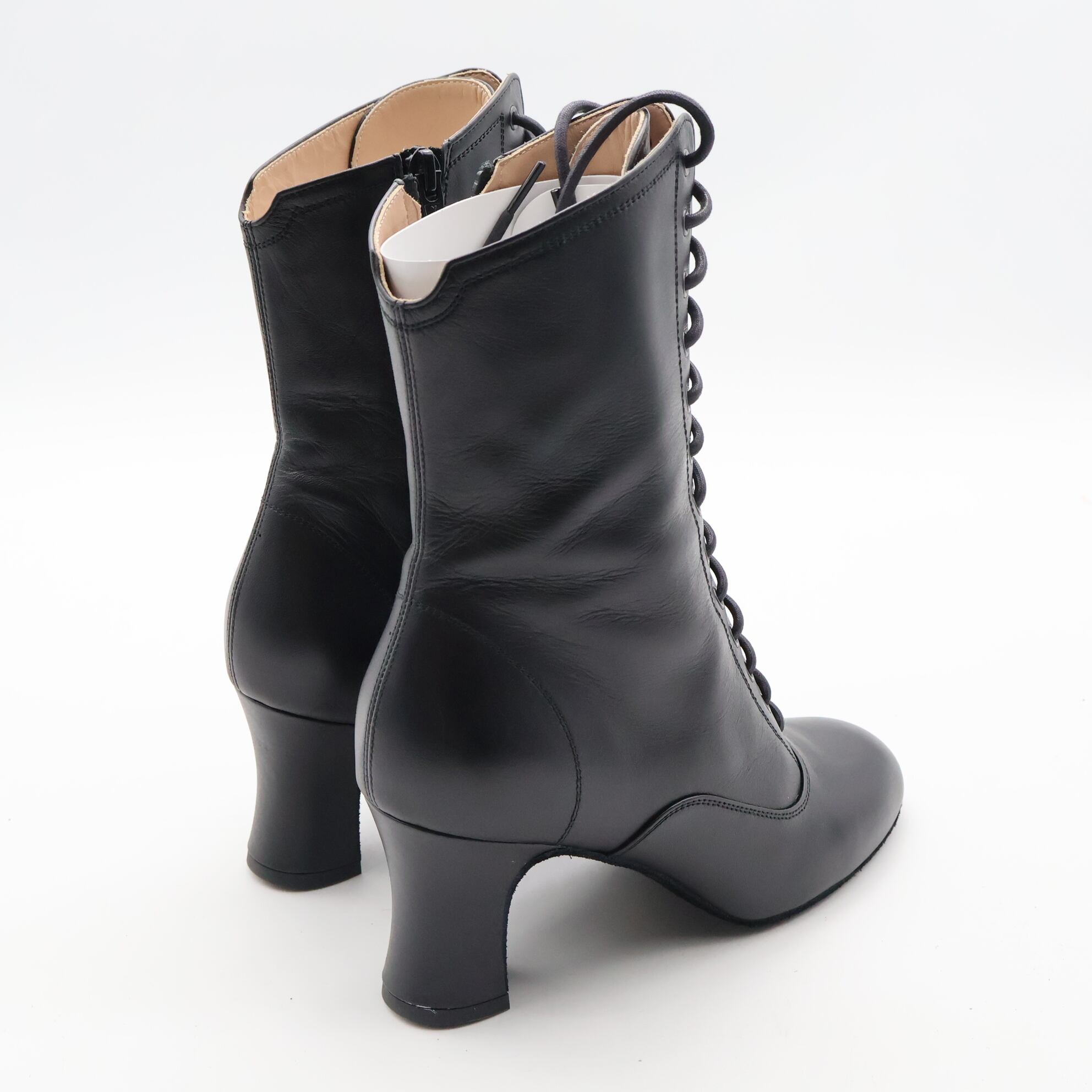 【日本製 レディースシューズ】23 1/2CM Muse J ヒールブーツ ブラック 真っ黒 レザー レディース シューズ 靴 お洒落 箱付き