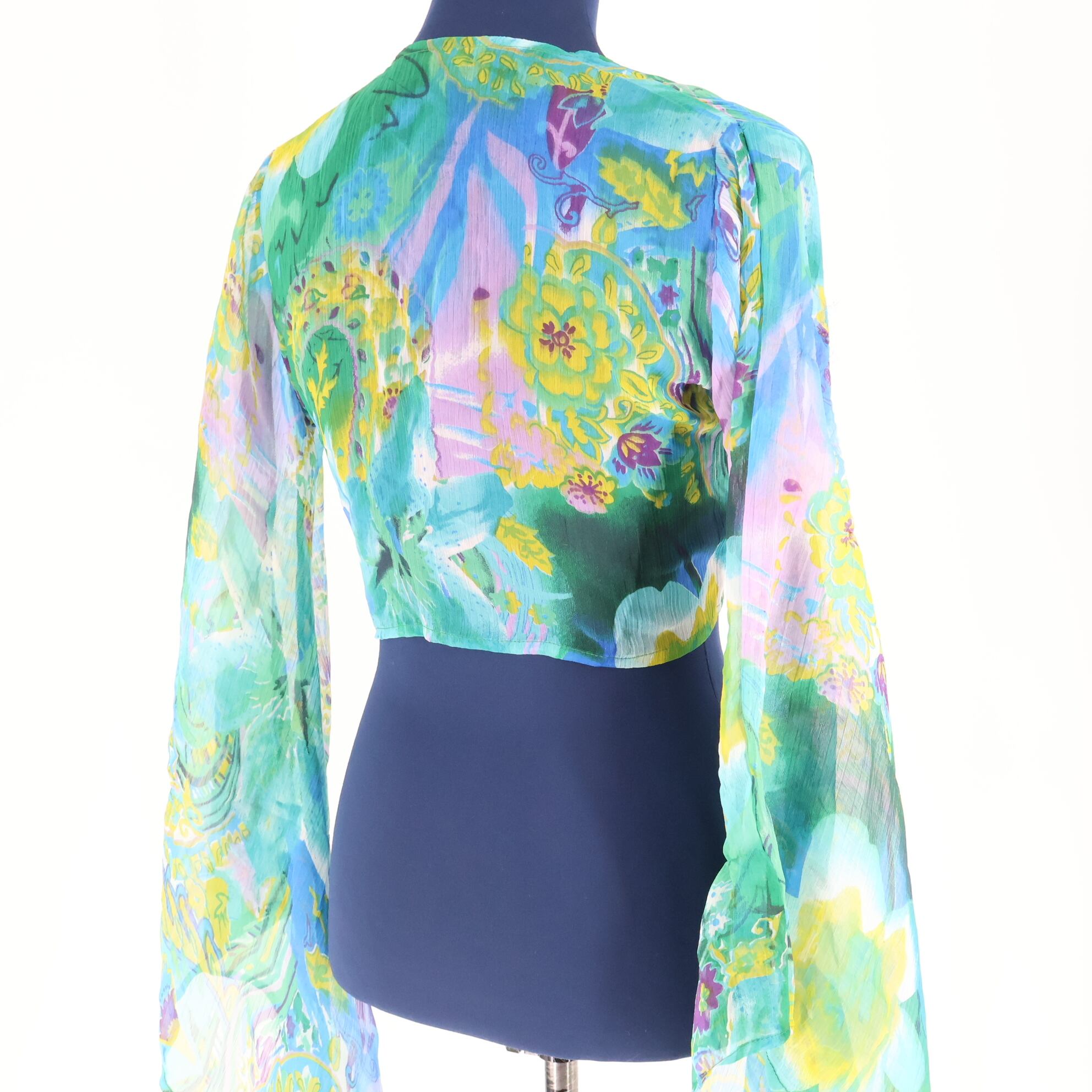 【ベリーダンス衣装】エメラルドグリーン Garam garam チョリ トップス レース生地 緑 黄色 リボン フリル 異国情緒 花柄