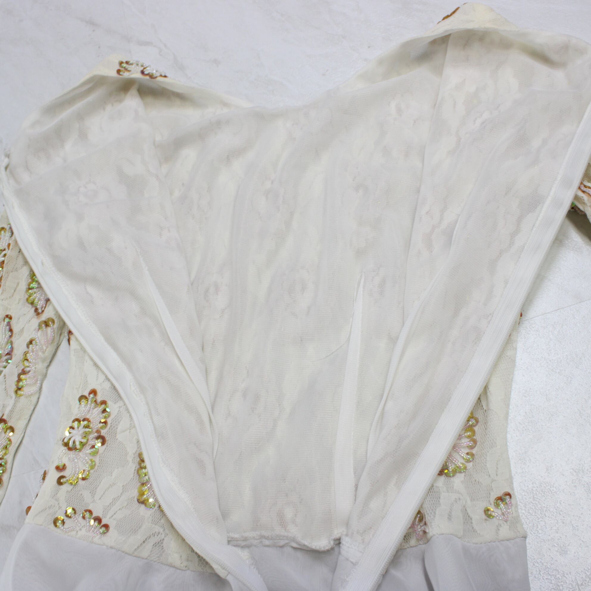 #社交ダンス衣装 #ドレス #チョーカー付き #ホワイト #スパンコール #エレガントスタイル #フレアスカート #華やか #ダンスウェア #ダンスコーデ #ダンス衣装 #ダンスコスチューム #ステージ衣装 #古着 #中古 #ENUTSU
