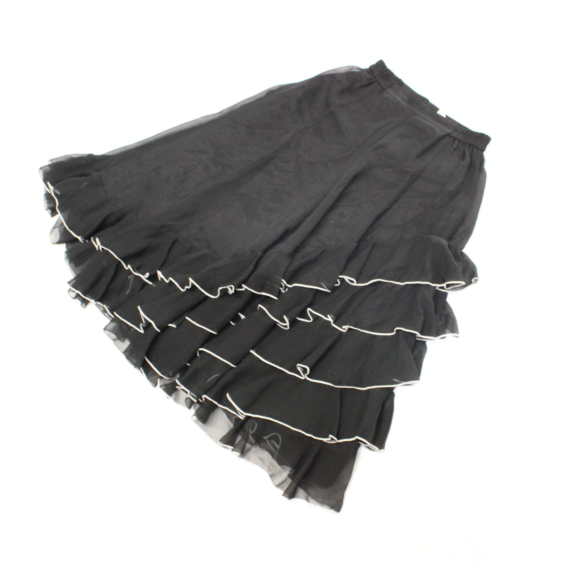 【美品 日本製社交ダンス衣装】スカート 黒 ブラック ホワイト 白 Mサイズ Sanline サンリーヌ フリル レイヤー かわいい 上品
