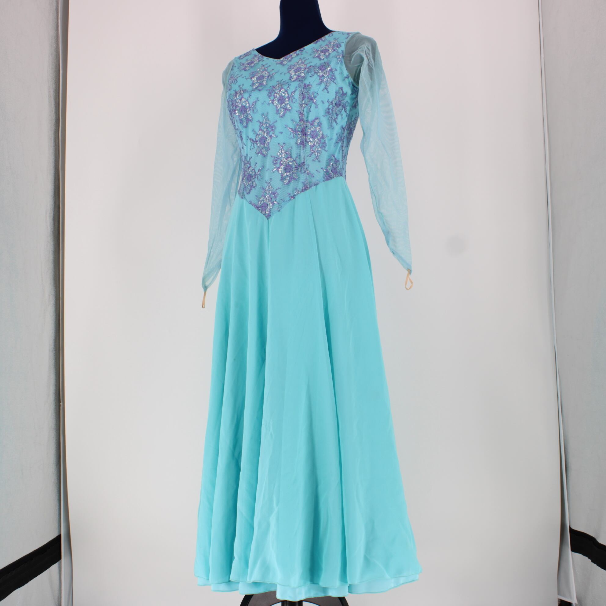 【美品 日本製社交ダンス衣装】ワンピース ドレス Sanline サンリーヌ 水色 ライトブルー レース かわいい 華やか ゴージャス