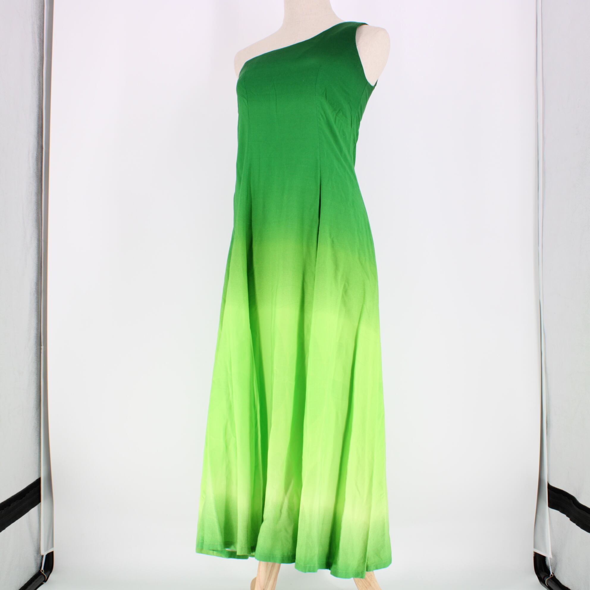 【ハワイ製 フラダンス衣装】グリーン ワンピース ドレス ライトグリーン ワンショルダー 緑 黄緑 グラデーション かわいい