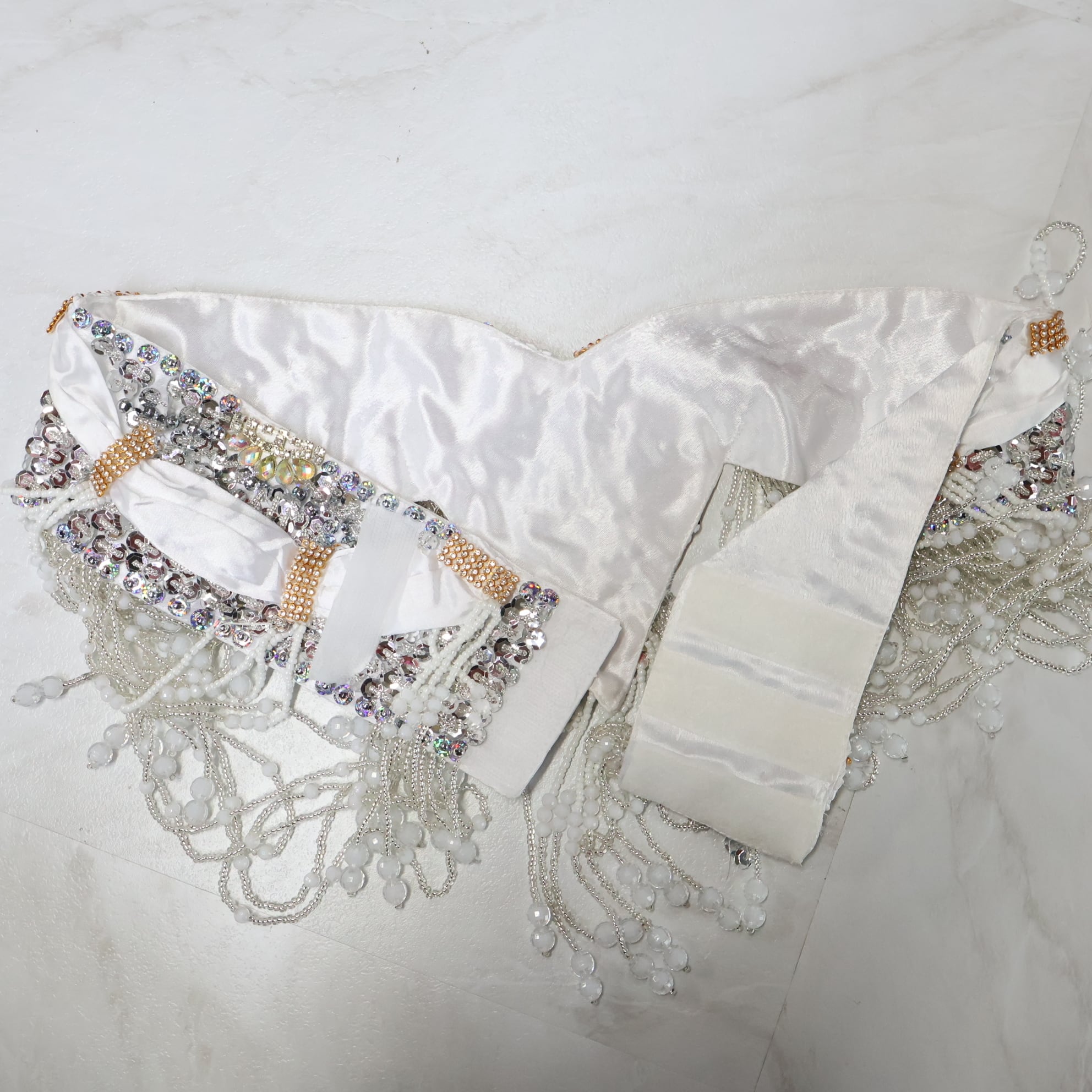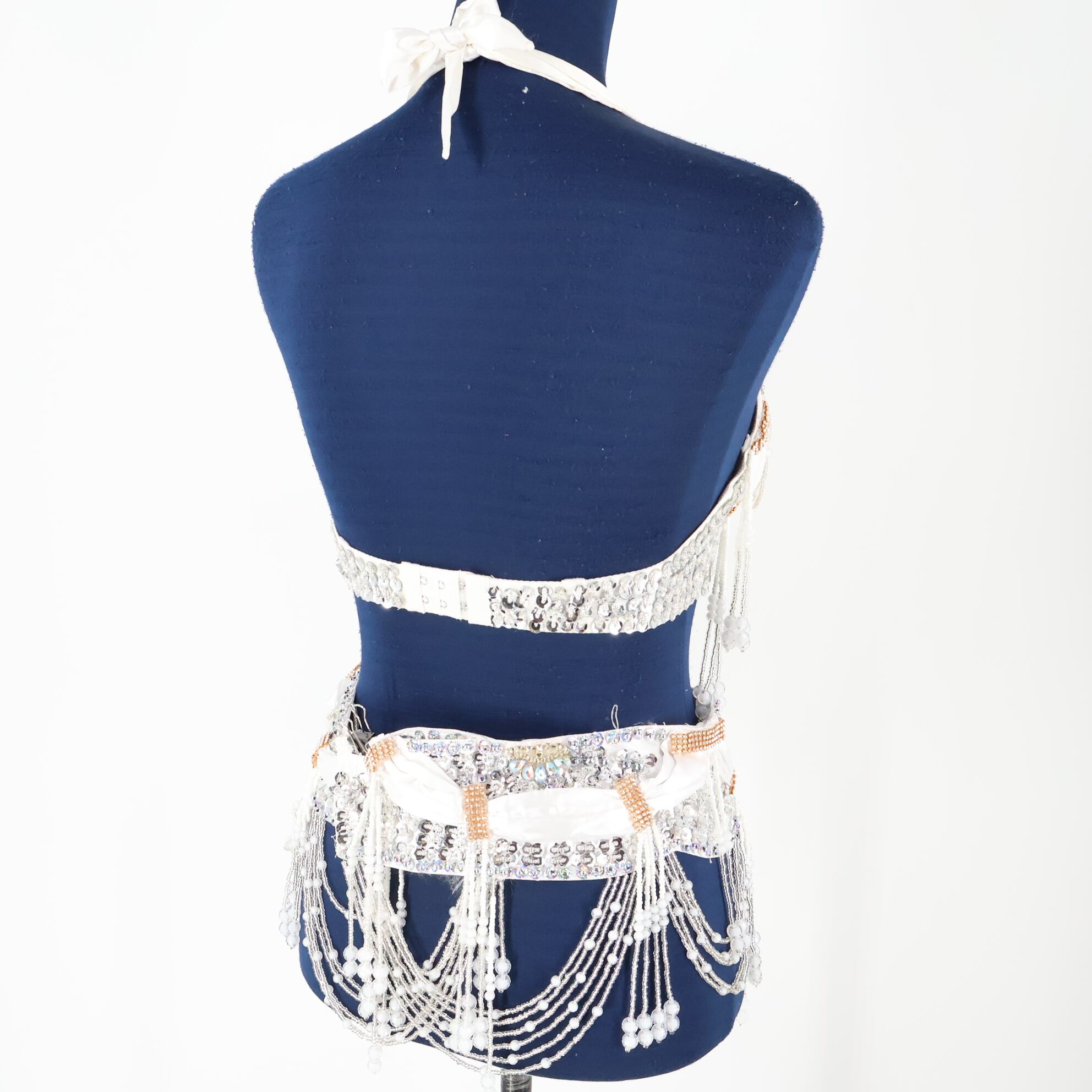 #ベリーダンス #ベリーダンス衣装 #オリエンタル衣装 #ホワイト #シルバー #装飾 #煌びやか #ラメ #光沢 #豪華 #エレガント #ステージ映え #女性らしい #可愛い #華やか #ダンスファッション #ダンスコスチューム #ステージ衣装 #古着 #中古 #ENUTSU
