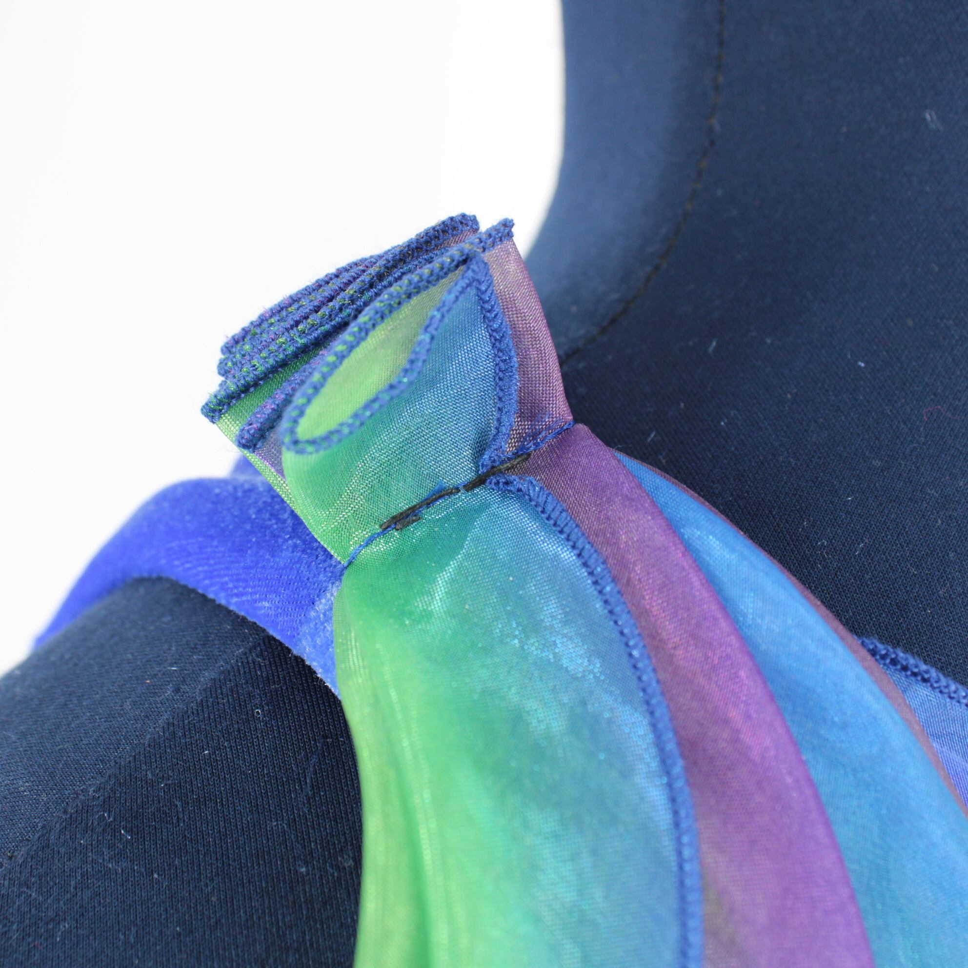 【フラダンス衣装】ブルー MakaMaka ワンピース ドレス ベロア ワンショルダー 青 レインボー 光沢 青 無地 袖なし かわいい
