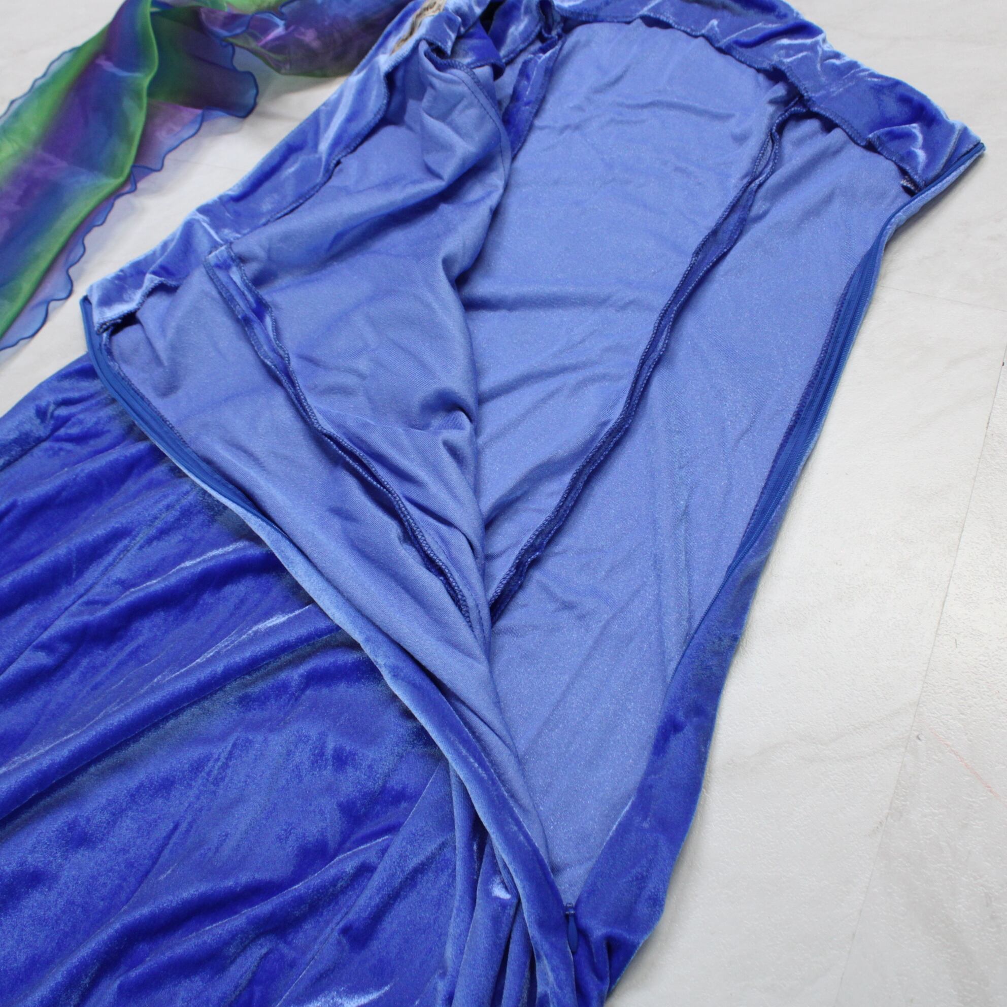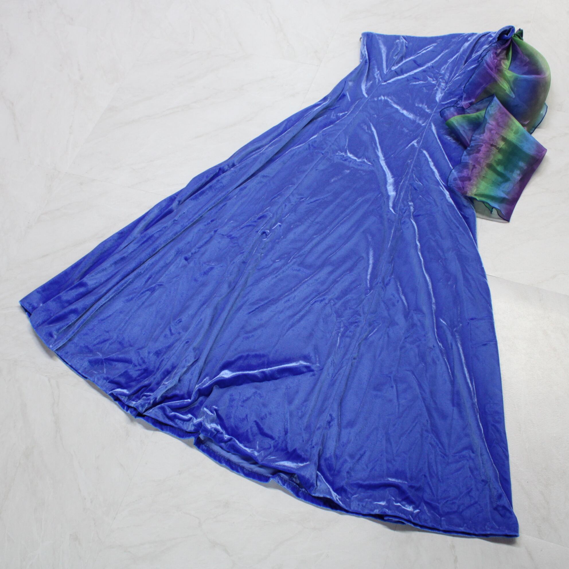 #フラダンス #ワンピースドレス #MakaMaka #ベロア生地 #ブルー #ワンショルダー #光沢 #高級感 #青 #無地 #エレガントスタイル #華やか #南国スタイル #リゾートファッション #ダンス衣装 #ダンスコスチューム #ステージ衣装 #古着 #中古 #ENUTSU