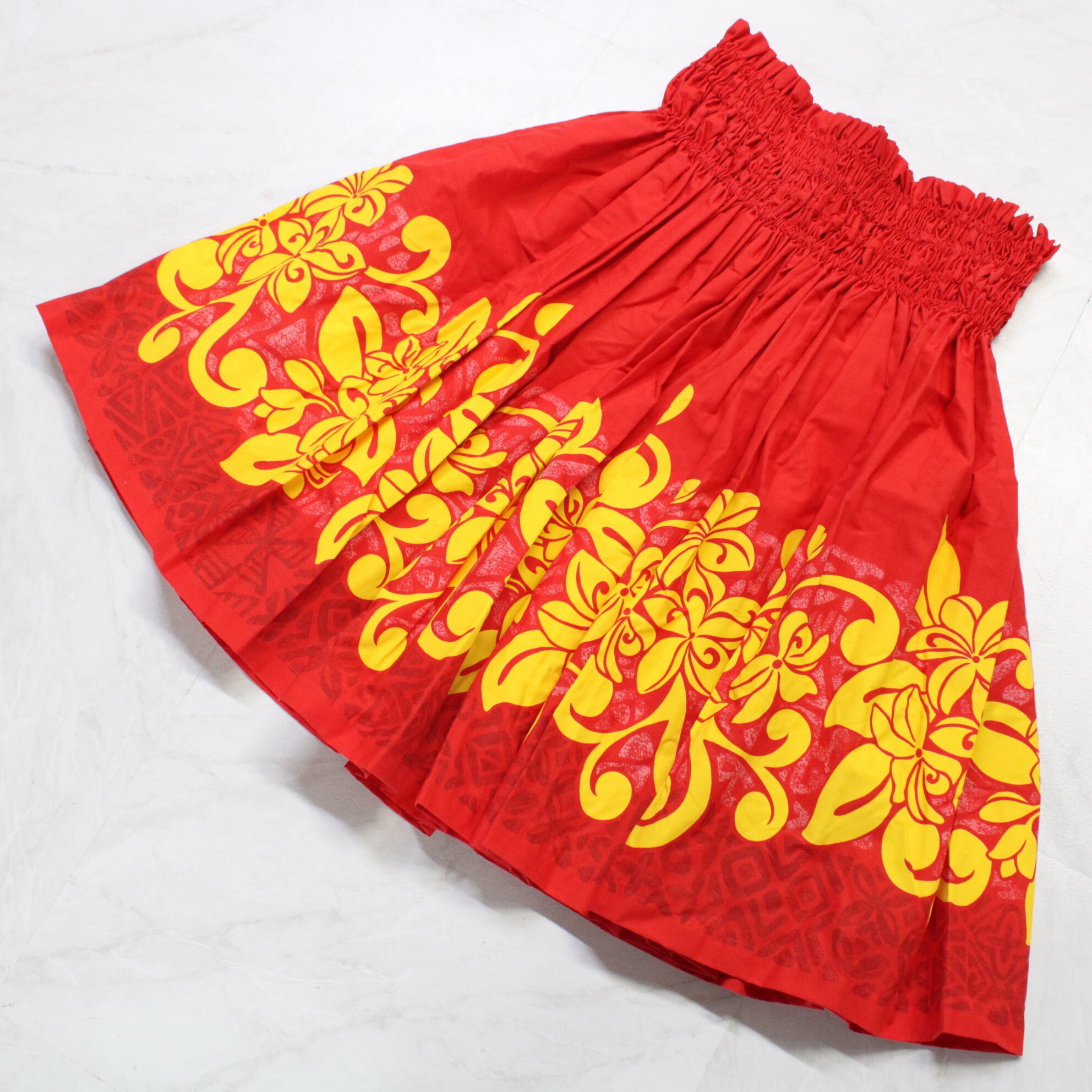 【フラダンス衣装】レッド 8STORE パウスカート 赤 黄 イエロープルメリア柄 花柄 鮮やか 華やか ハワイアン アロハ かわいい