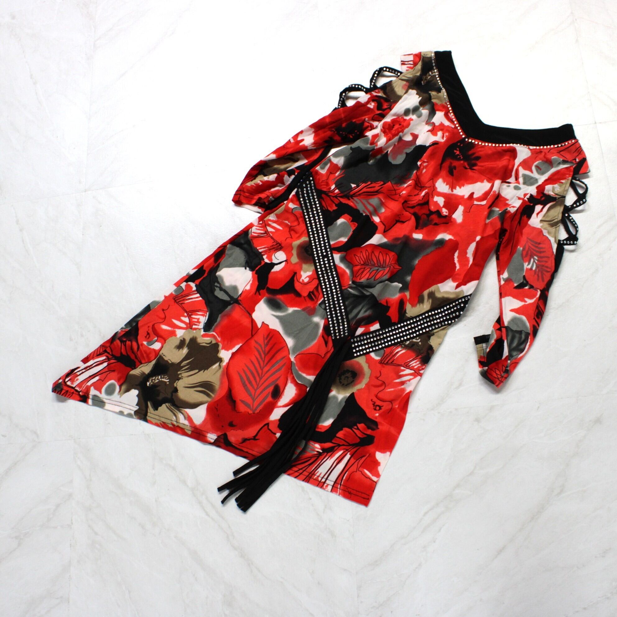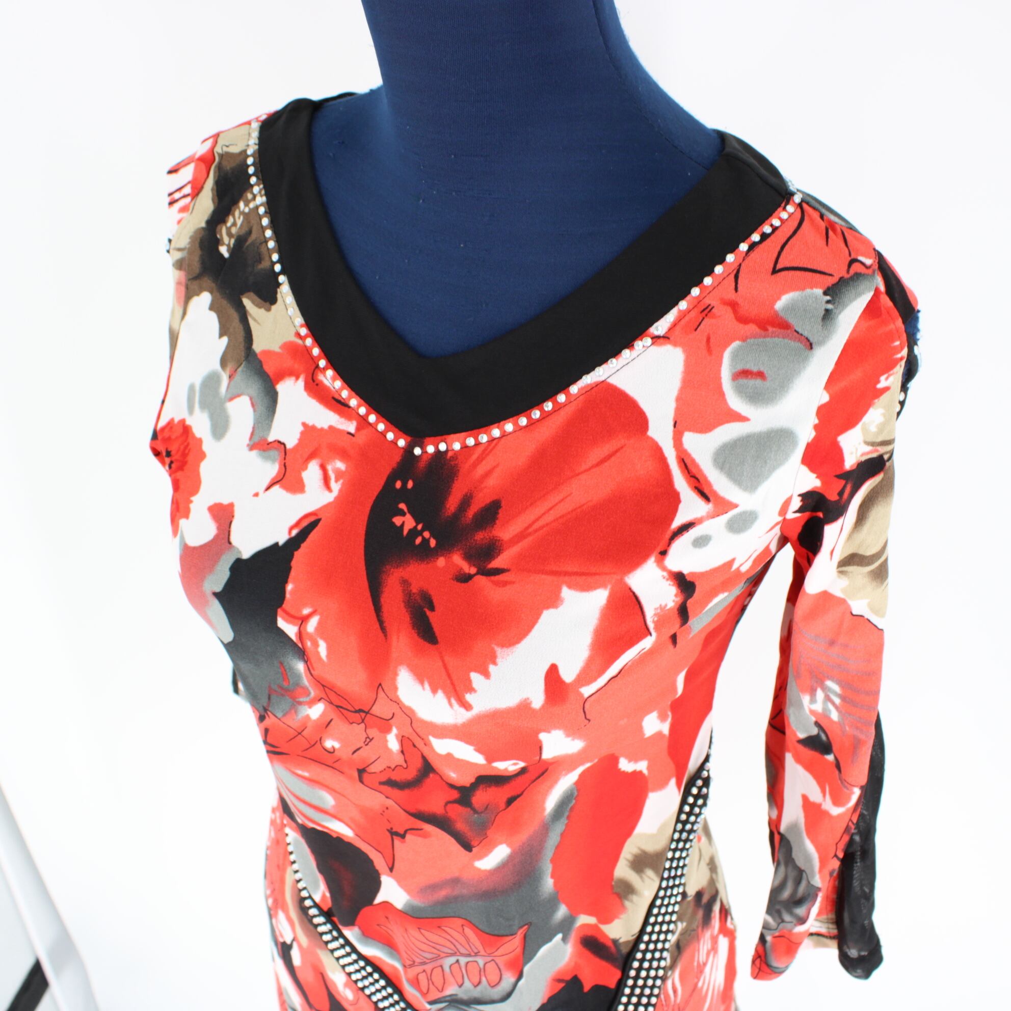 【美品 社交ダンス衣装】トップス ラインストーン 赤 黒 白 グレー レッド ブラック ホワイト かわいい 可愛い 派手 目立つ