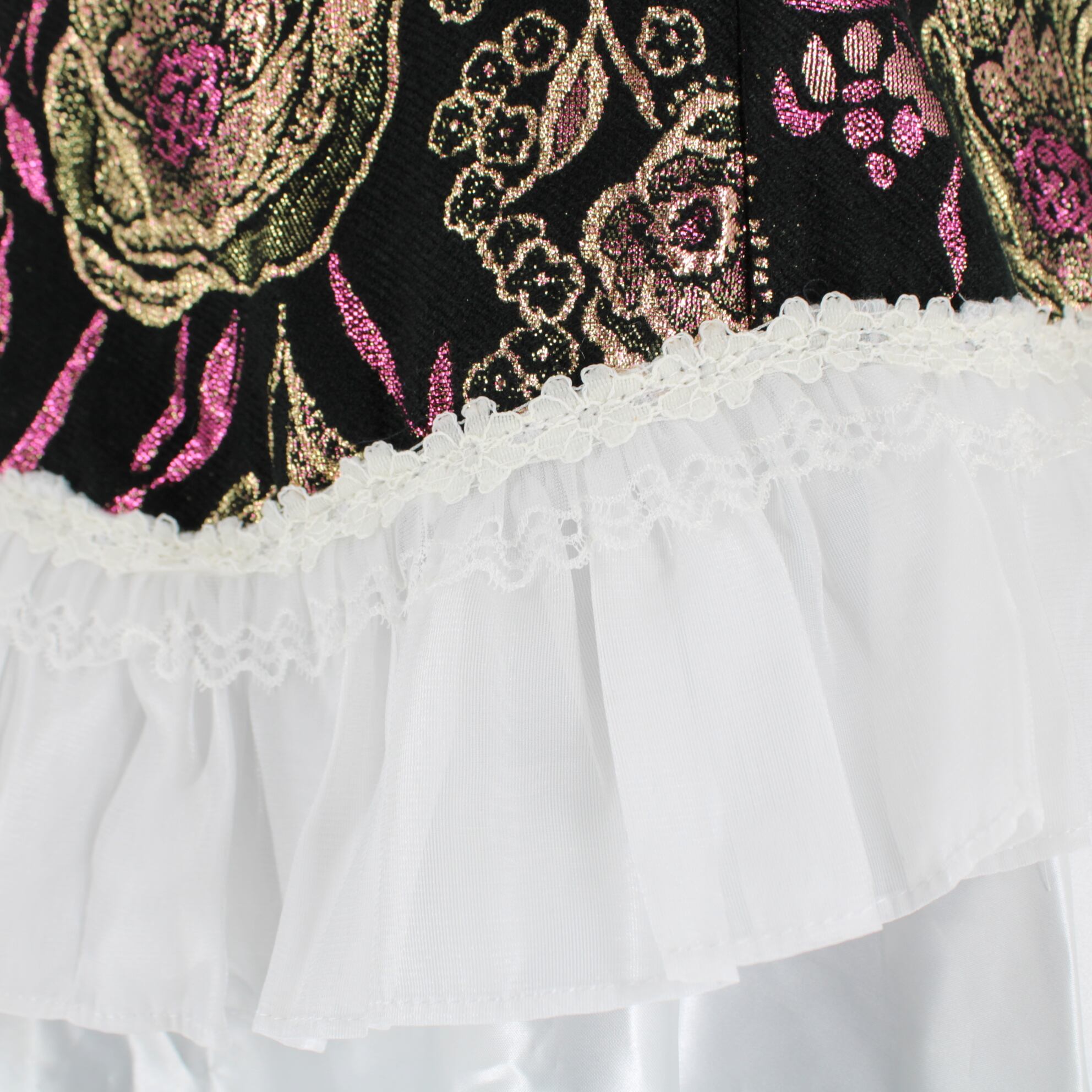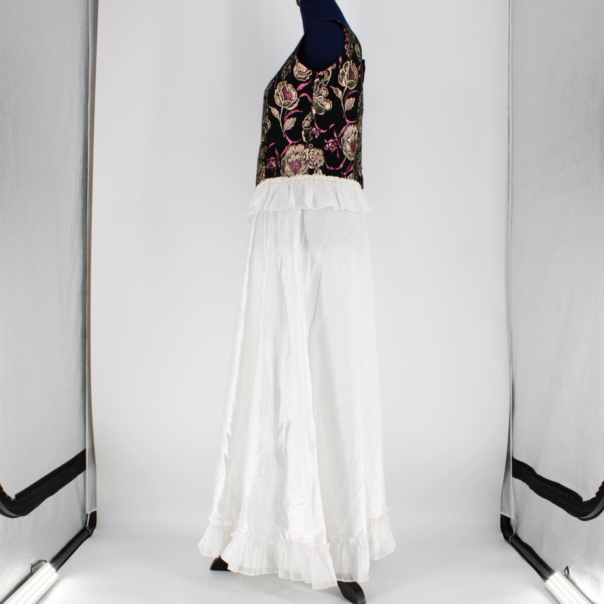 #フラダンス #ワンピースドレス #Pualani #プアラニ #ブラック #ホワイト #花柄 #キラキラ #サテン #フリル #可愛い #華やか #ハワイアン #アロハ #ダンス衣装 #ダンスコスチューム #ステージ衣装 #古着 #中古 #ENUTSU