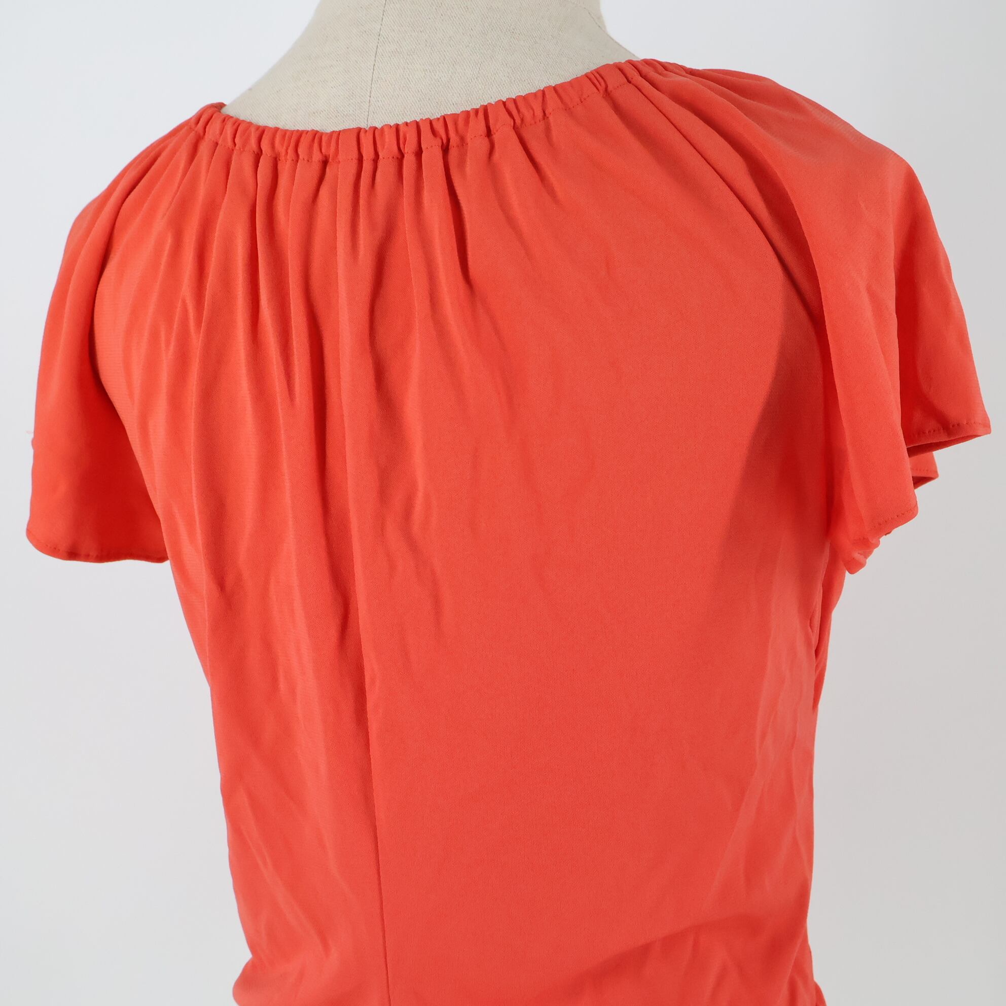 【美品 日本製 社交ダンス衣装】オレンジ Chacott チャコット ブラウス トップス カットソー 朱色 半袖 リボン 無地 レッスン