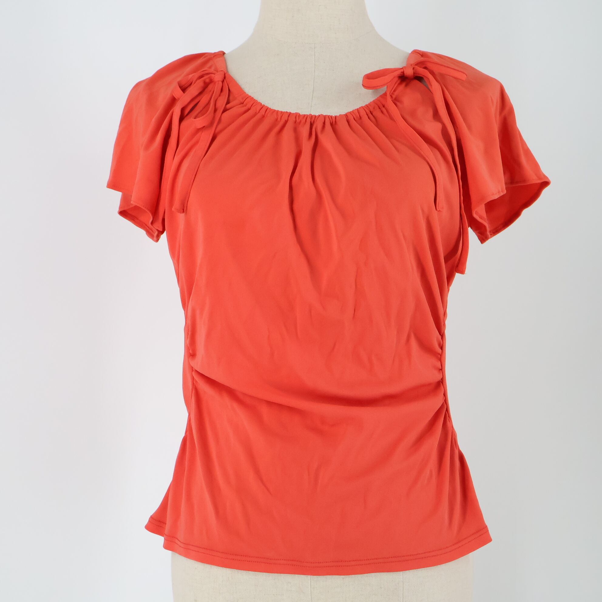 ▽リボン付きの朱色トップス