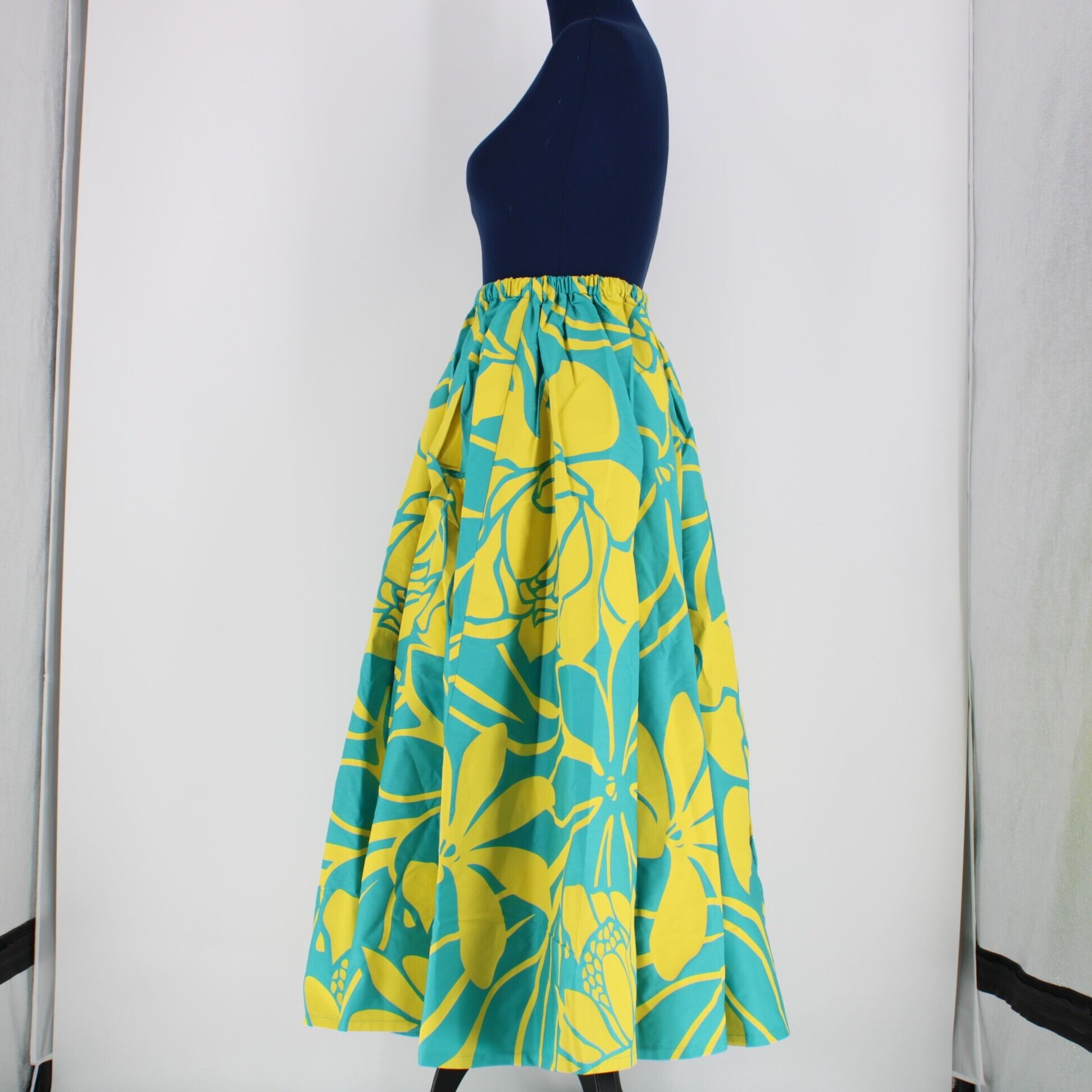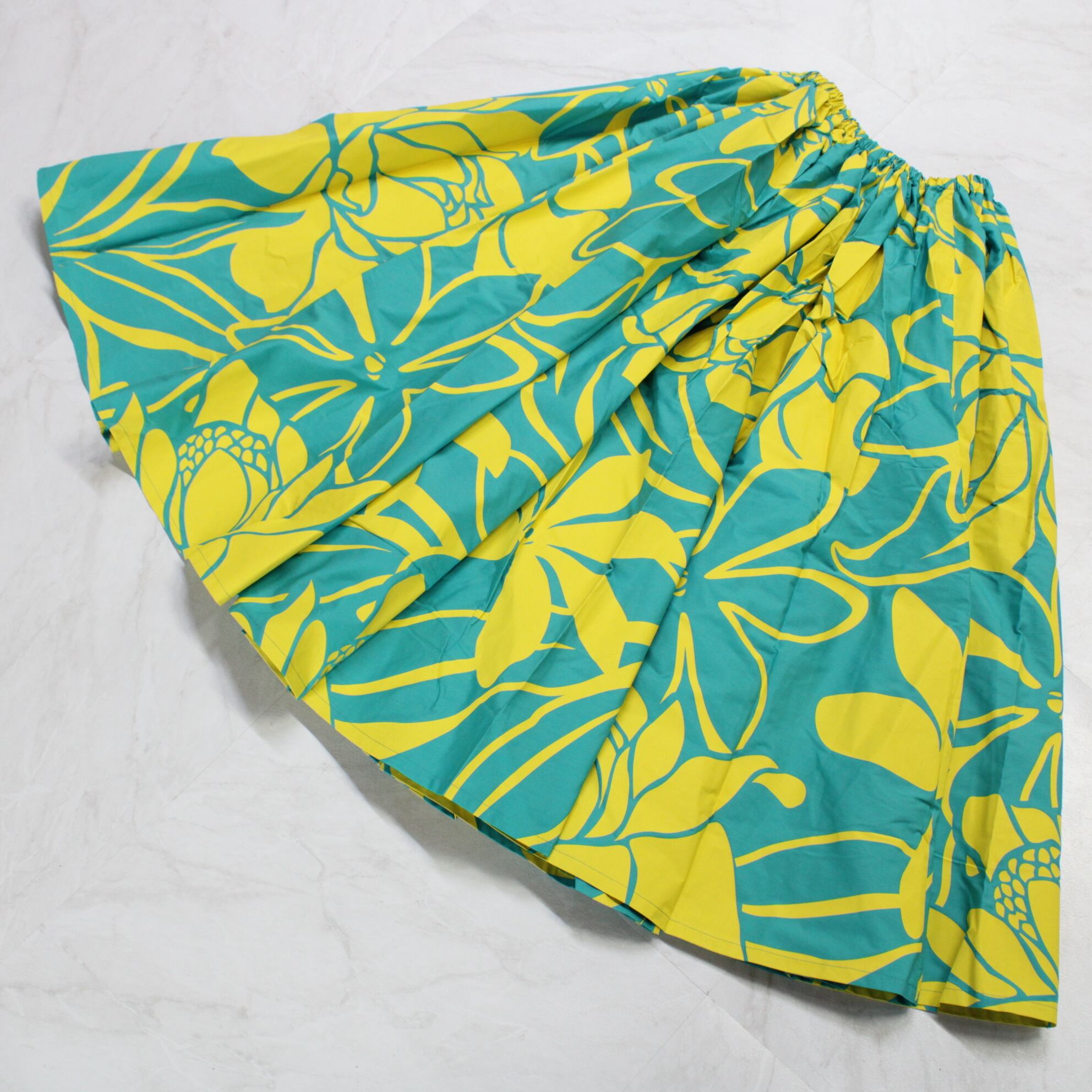 【日本製 フラダンス衣装】グリーン ALOHA STANDARDS アロハスタンダード パウスカート 緑 黄 ティアレ柄 イエロー ロング 花