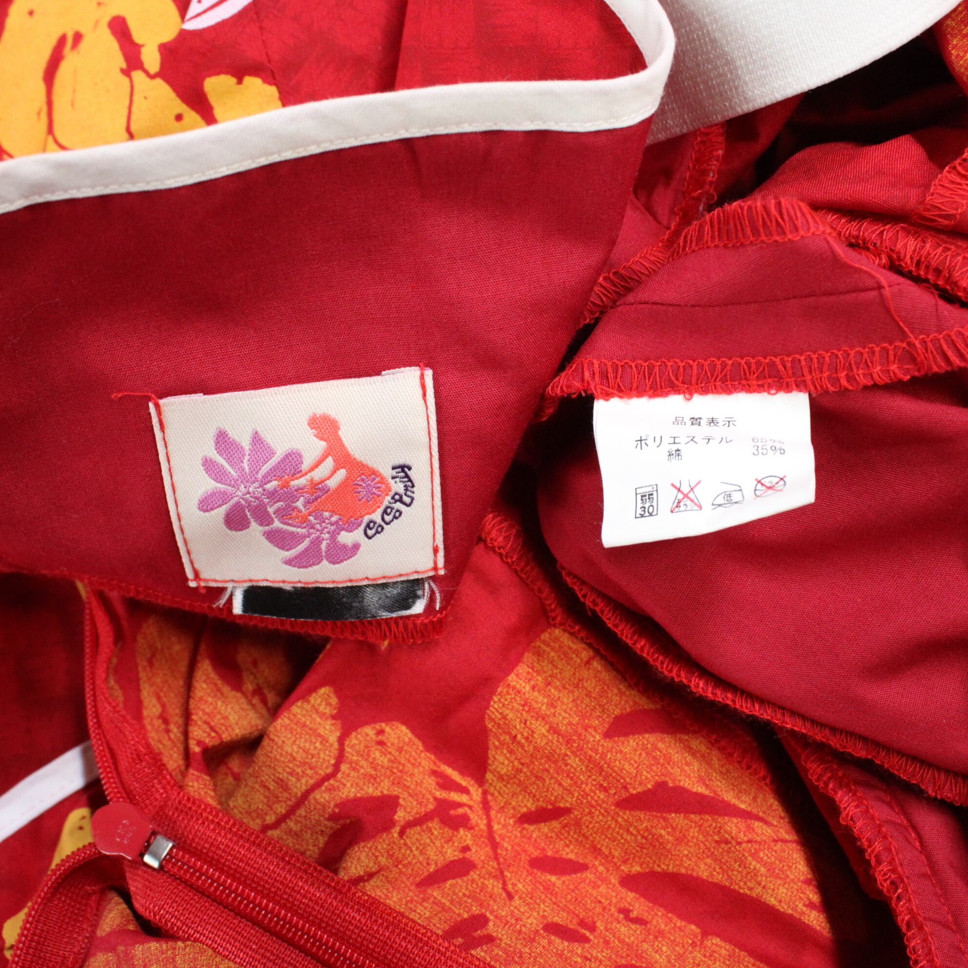【日本製 フラダンス衣装】レッド CoCoEmily ココエミリー ワンピース ドレス モンステラ柄 プルメリア柄 赤 黄 白 かわいい