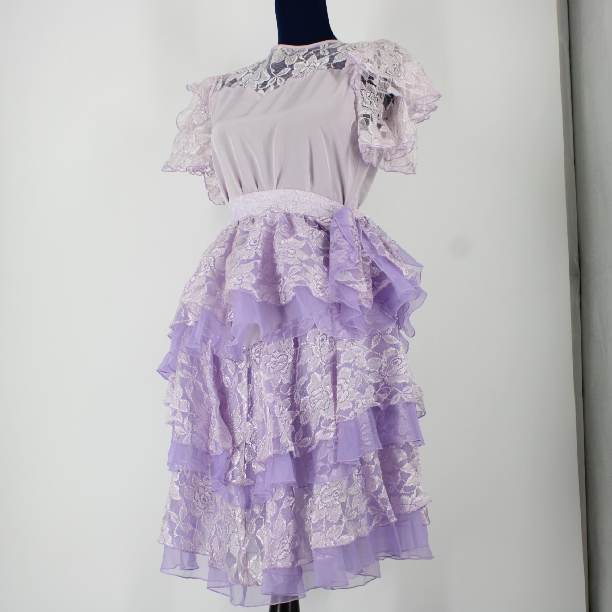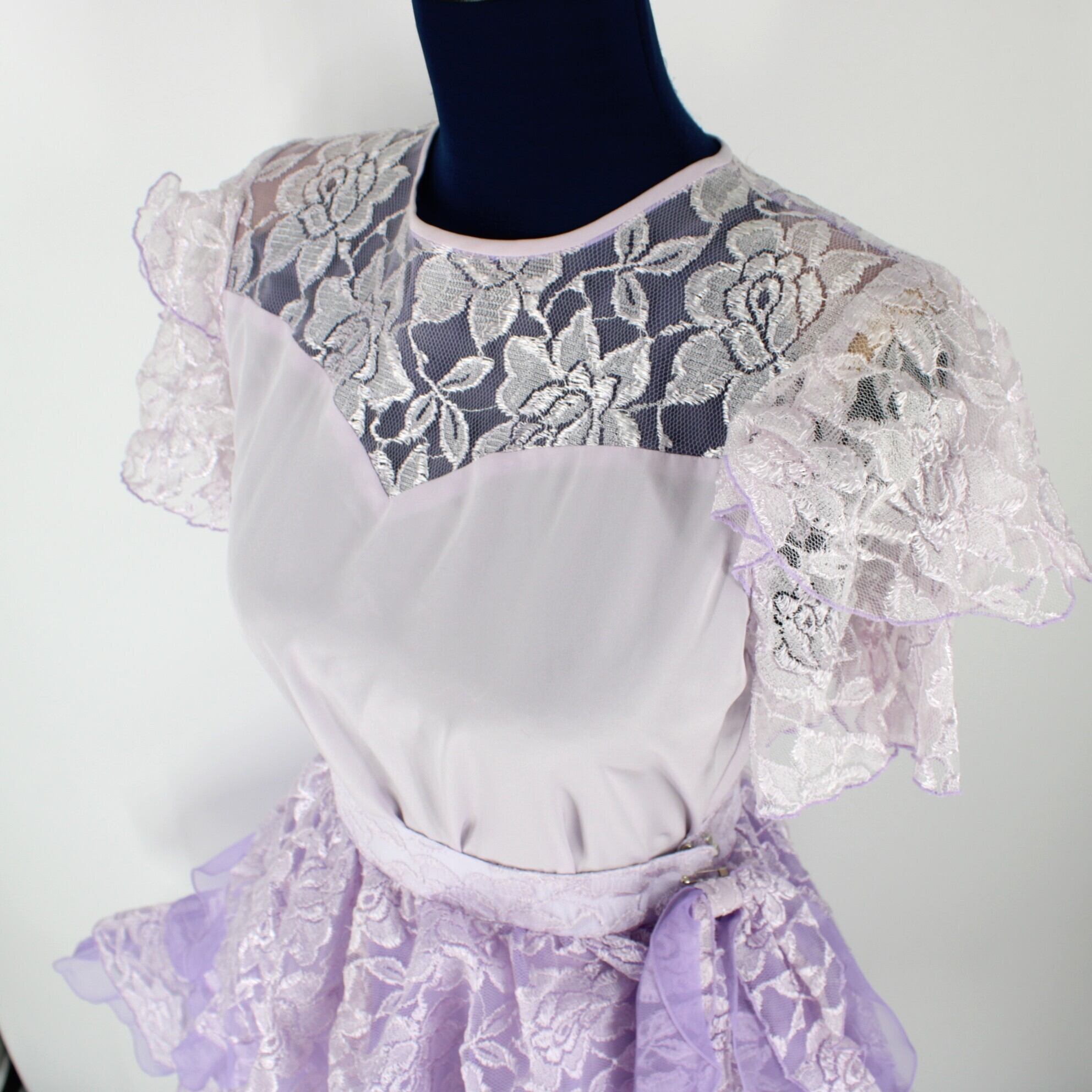 【美品 社交ダンス衣装】PROCEEDS プロシーズ 上下セット トップス スカート レオタード 紫 パープル ライラック 花柄 レース