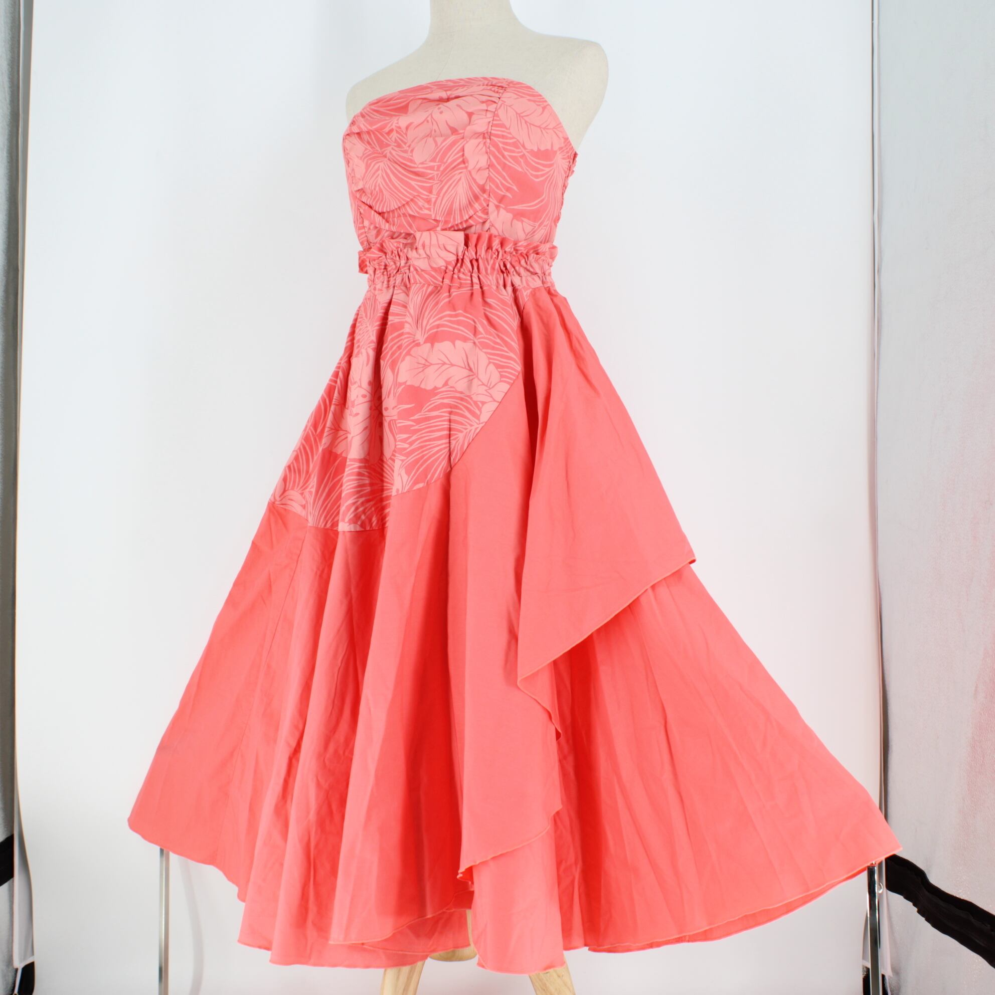 【フラダンス衣装】ピンク MermaidLine MMJ マーメイドライン 上下セット セットアップ 3点セット モンステラ柄 フリル 可愛い
