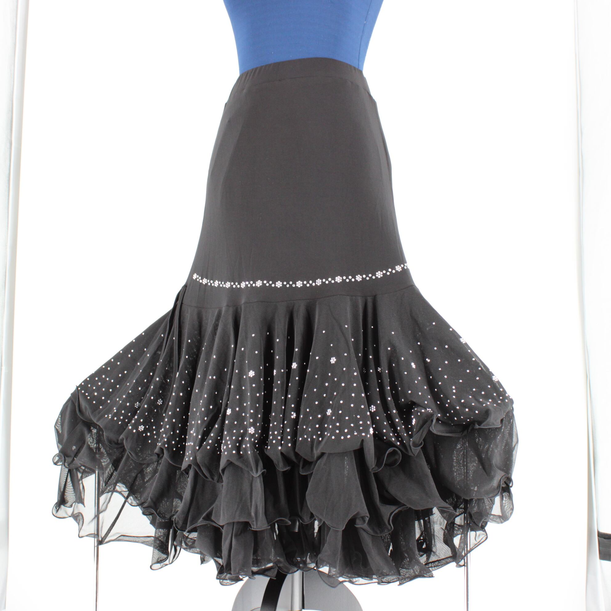 #社交ダンス衣装 #ダンススカート #ブラックスカート #ラインストーン #エレガントスタイル #美シルエット #動きやすい #ステージ映え #ウエストゴム #快適フィット #ダンス衣装 #ダンスコスチューム #ステージ衣装 #古着 #中古 #ENUTSU