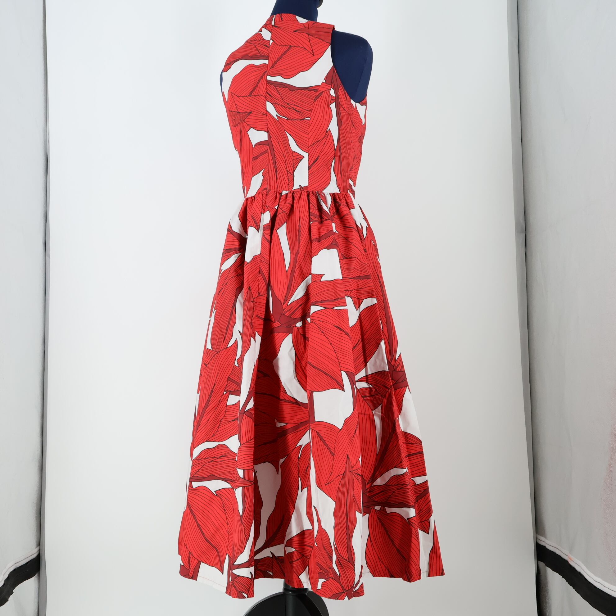 【フラダンス衣装】レッド ワンピース ドレス ホワイト 赤 白 ノースリーブ ハワイアンプリント アロハ 鮮やか 袖なし 可愛い