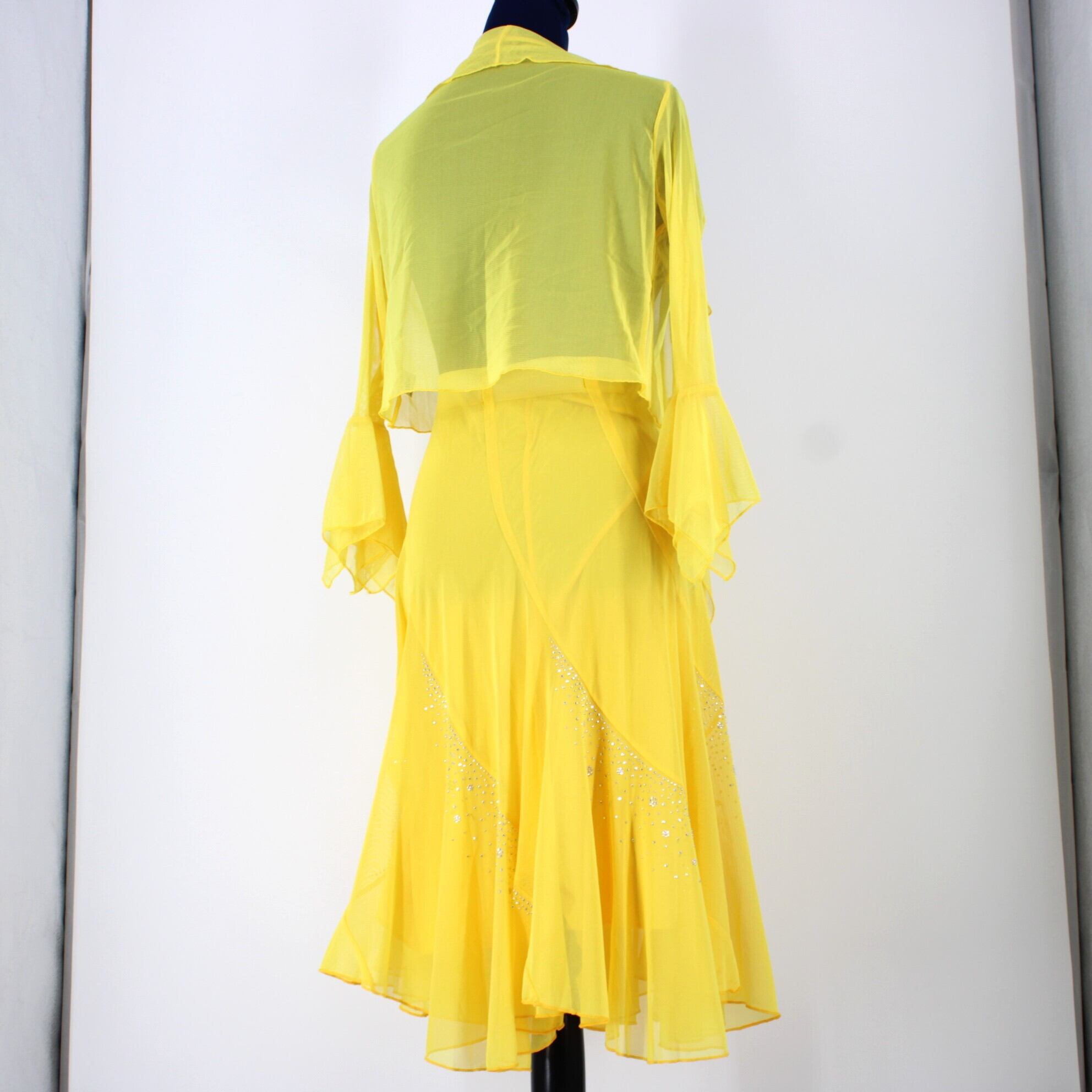 【美品 社交ダンス衣装】上下セット まとめ売り 黄色 イエロー かわいい 可愛い 無地 シンプル ラインストーン スカート 上品