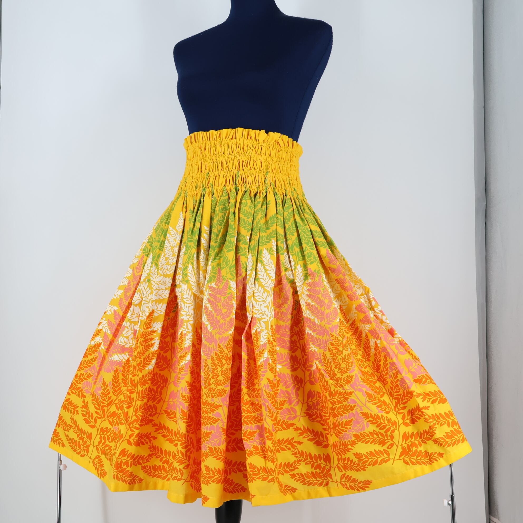 【日本製 フラダンス衣装】イエロー パウスカート 鮮やか 華やか 黄 ピンク オレンジ ホワイト グリーン 白 緑 明るい 可愛い