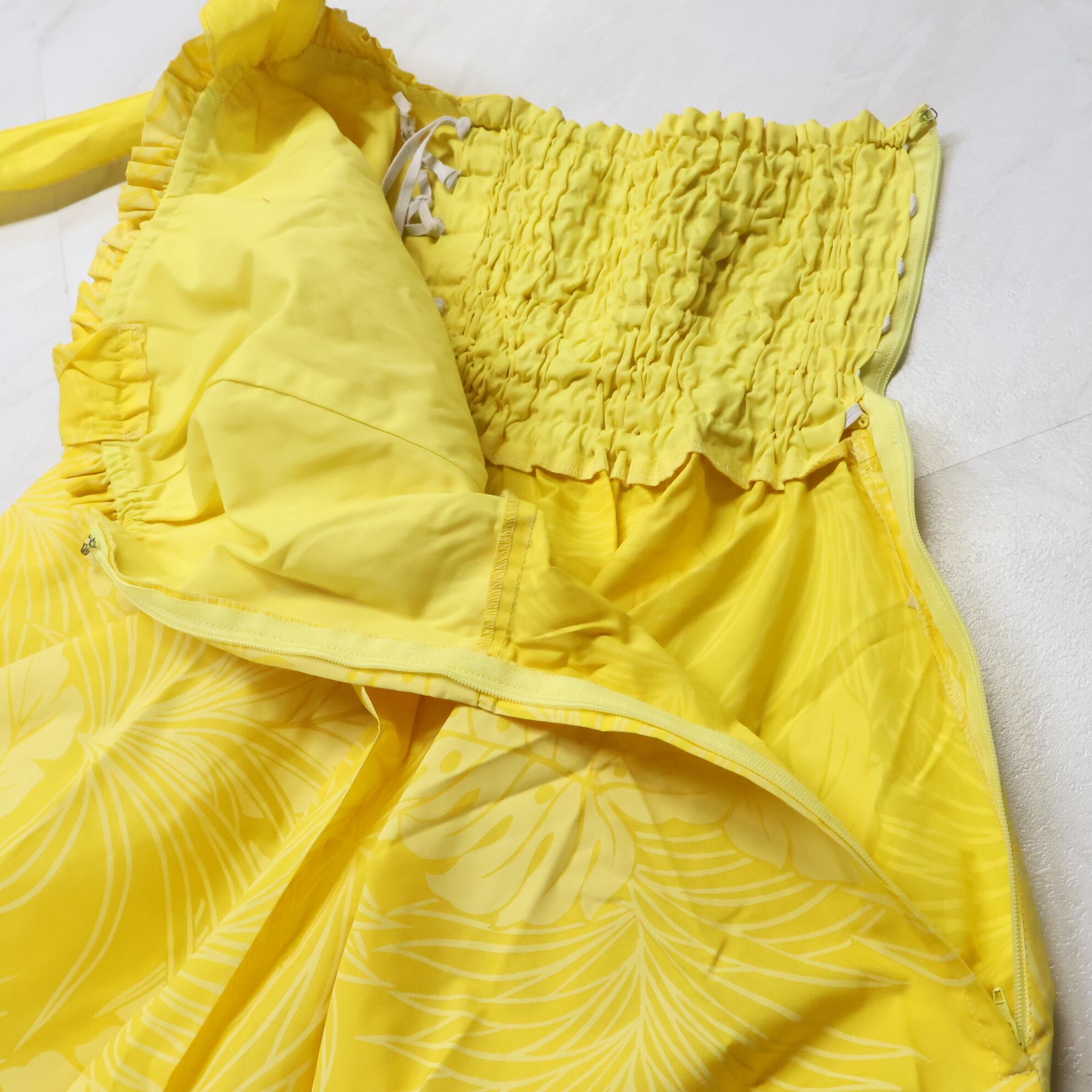 #フラダンス #ワンピースドレス #モンステラ柄 #イエロー #フリル #リボン #華やか #フラガール #リゾートコーデ #アロハファッション #タヒチアン #南国スタイル #フラ衣装 #鮮やか #袖なし #ダンス衣装 #ダンスコスチューム #ステージ衣装 #古着 #中古 #ENUTSU