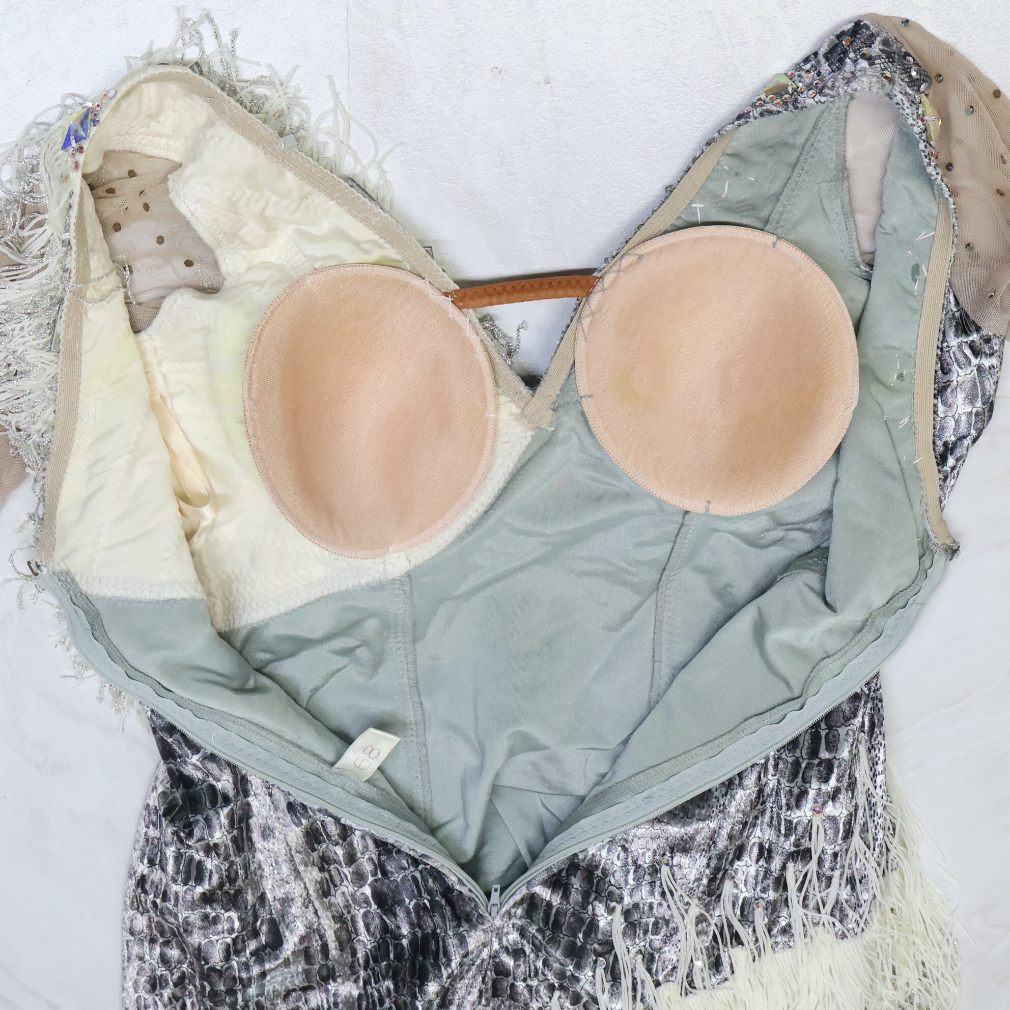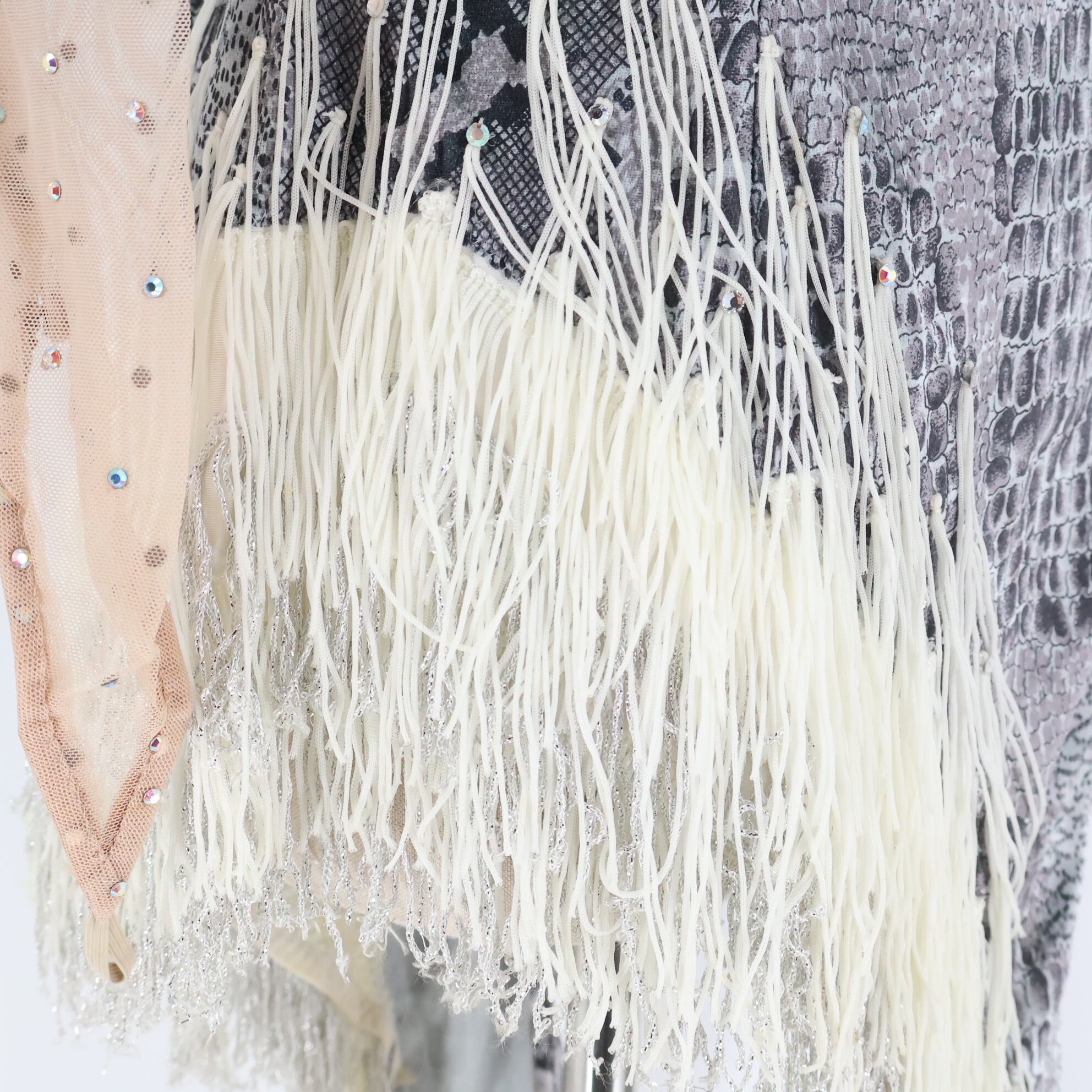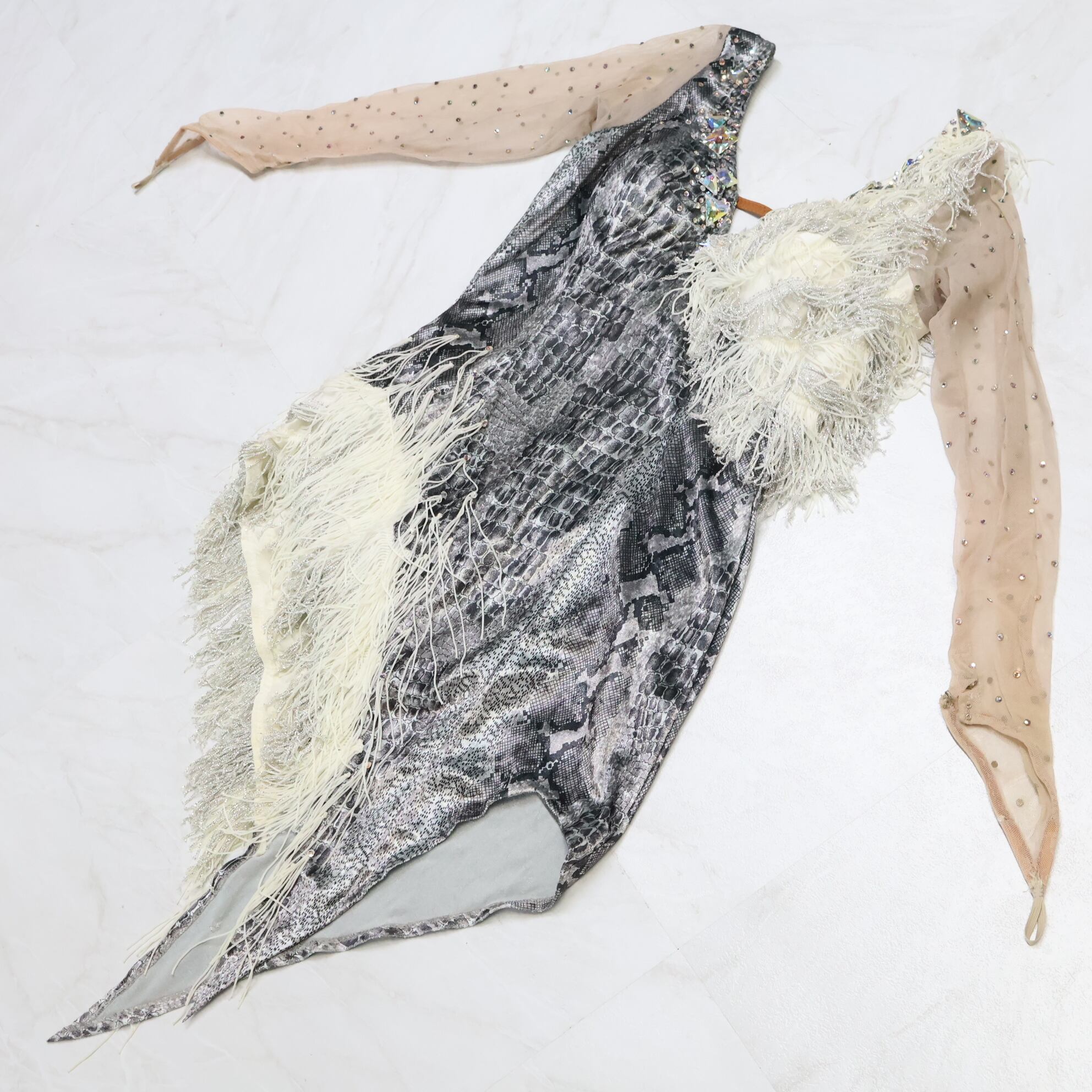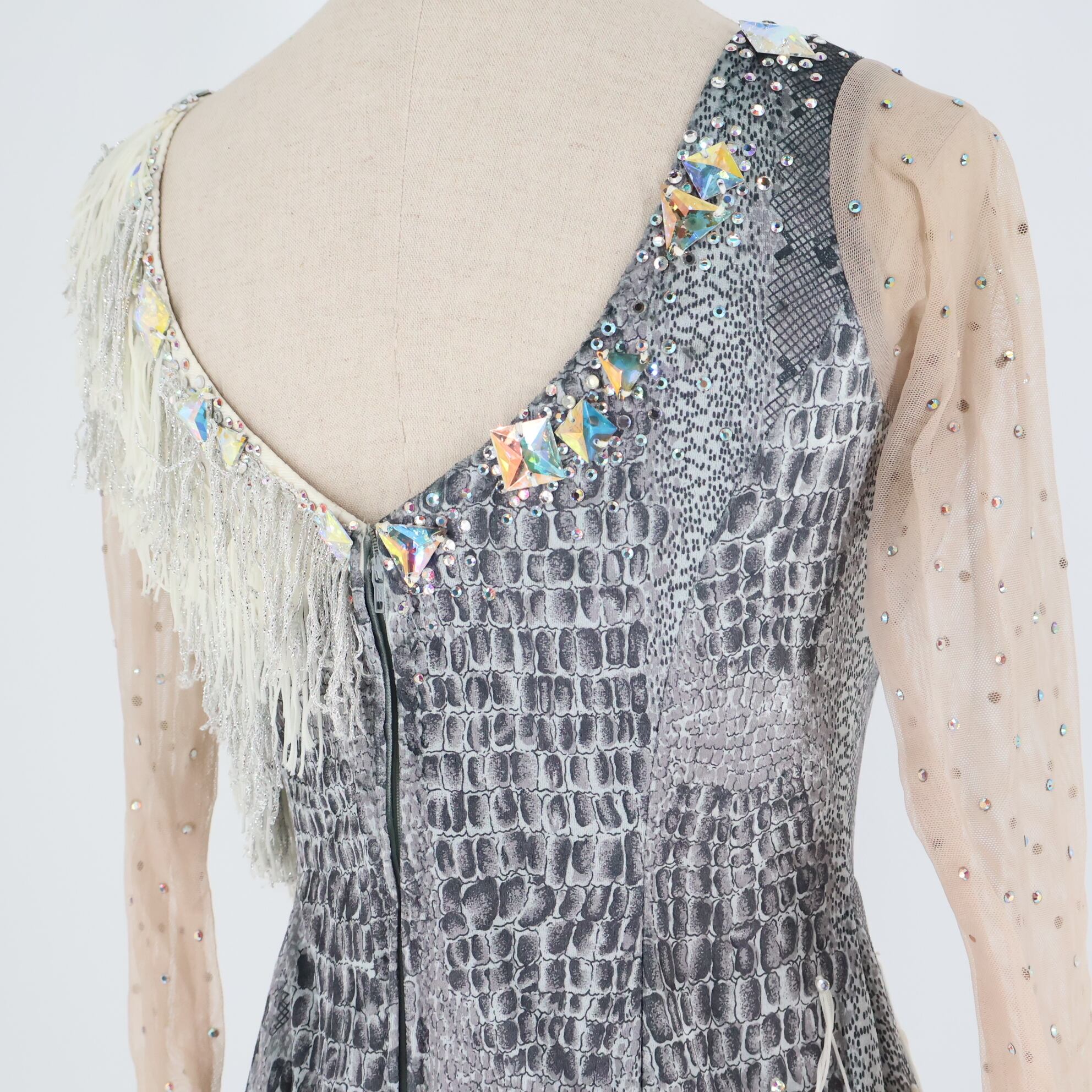 #社交ダンス衣装 #ラテンドレス #ワンピースドレス #クロコダイルデザイン #フリンジドレス #グレードレス #アイボリー #長袖ドレス #アニマルプリント #ダンス衣装 #ダンスコスチューム #ステージ衣装 #古着 #中古 #ENUTSU #社交ダンスコスチューム #女性用ダンス衣装 #ダンスパフォーマンス #レディースファッション #ステージパフォーマンス #グレー衣装 #ダンスショー