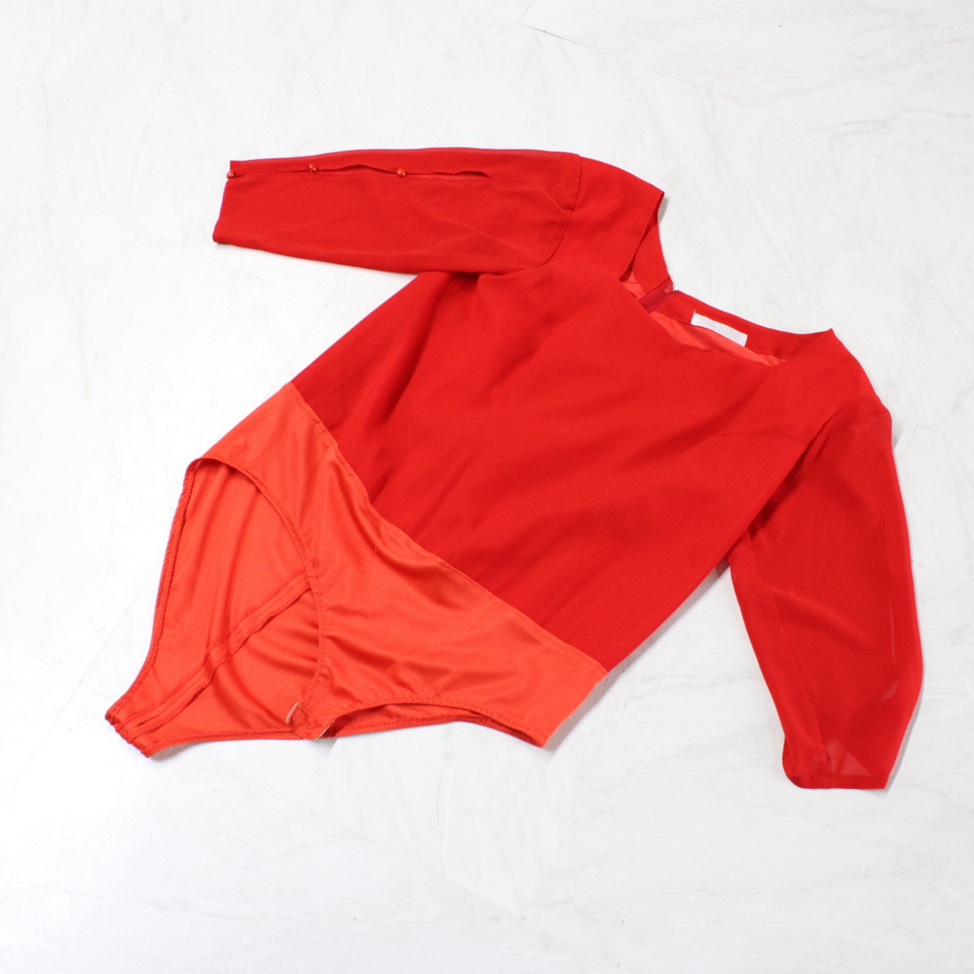 【日本製社交ダンス衣装】上下セット トップス スカート レオタード SEKINE セキネ 11号 9号 赤 レッド 無地 ラインストーン