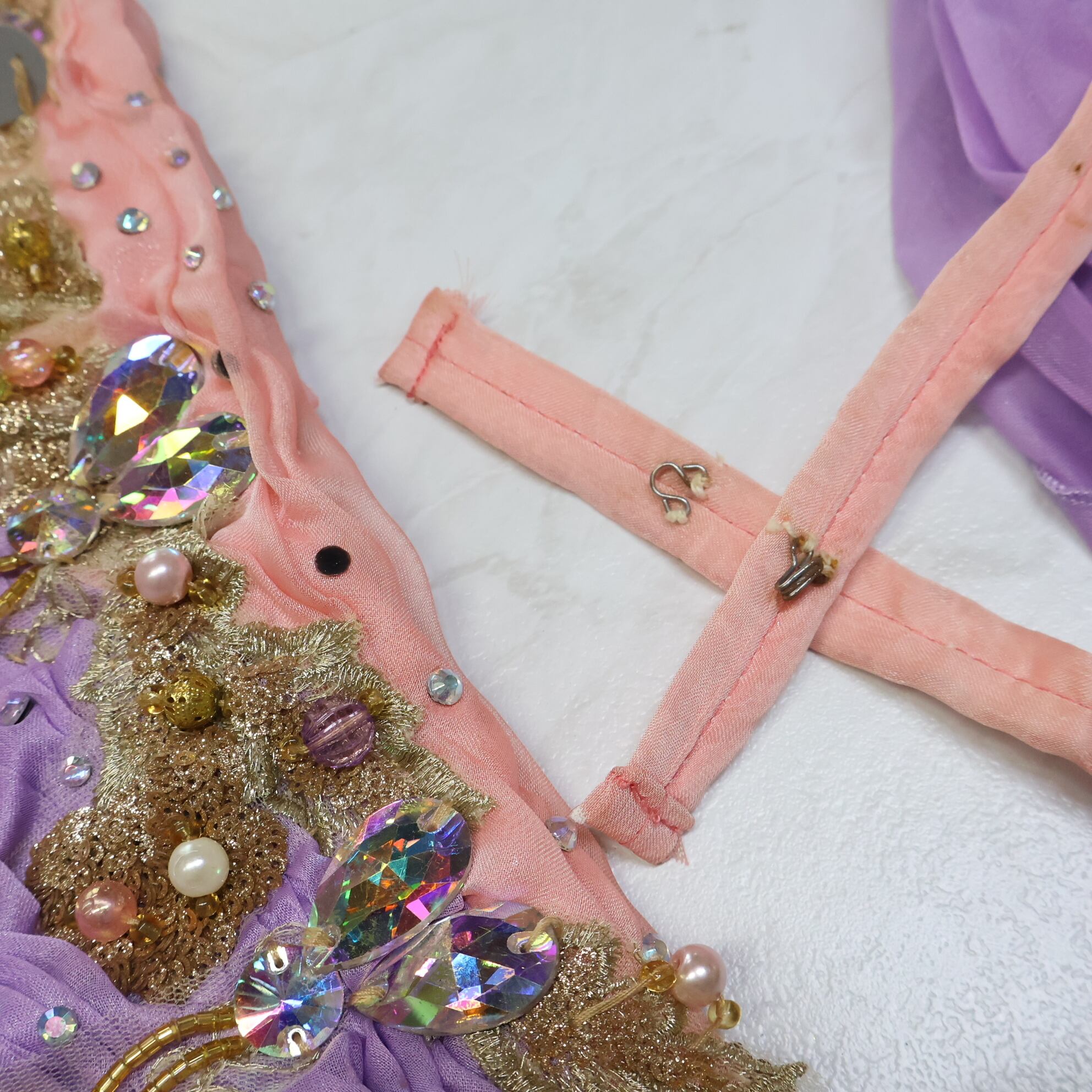 #ベリーダンス #オリエンタル衣装 #パープル #薄ピンク #ビーズ #ラインストーン #紫 #ゴールド #レース #スリット #パール #花柄 #フリル #煌びやか #華やか #女性らしい #トップス #スカート #アクセサリー #ダンス衣装 #ダンスコスチューム #ステージ衣装 #古着 #中古 #ENUTSU