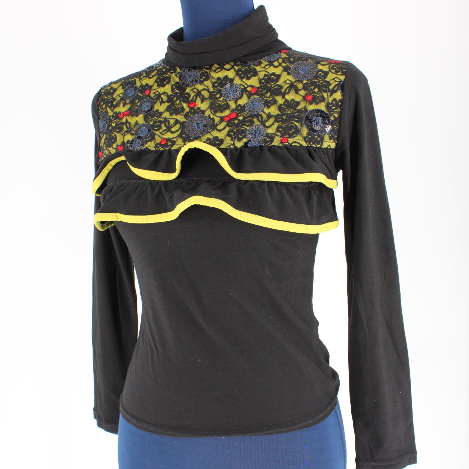 #社交ダンス衣装 #ダンストップス #ブラックイエロー #スパンコール #レースデザイン #ダンス衣装 #ダンスウェア #ダンスコスチューム #エレガントスタイル #ダンスファッション #ダンスコーデ #フラダンス #ステージ衣装 #舞台衣装 #ダンスコーディネート #古着 #中古 #ENUTSU