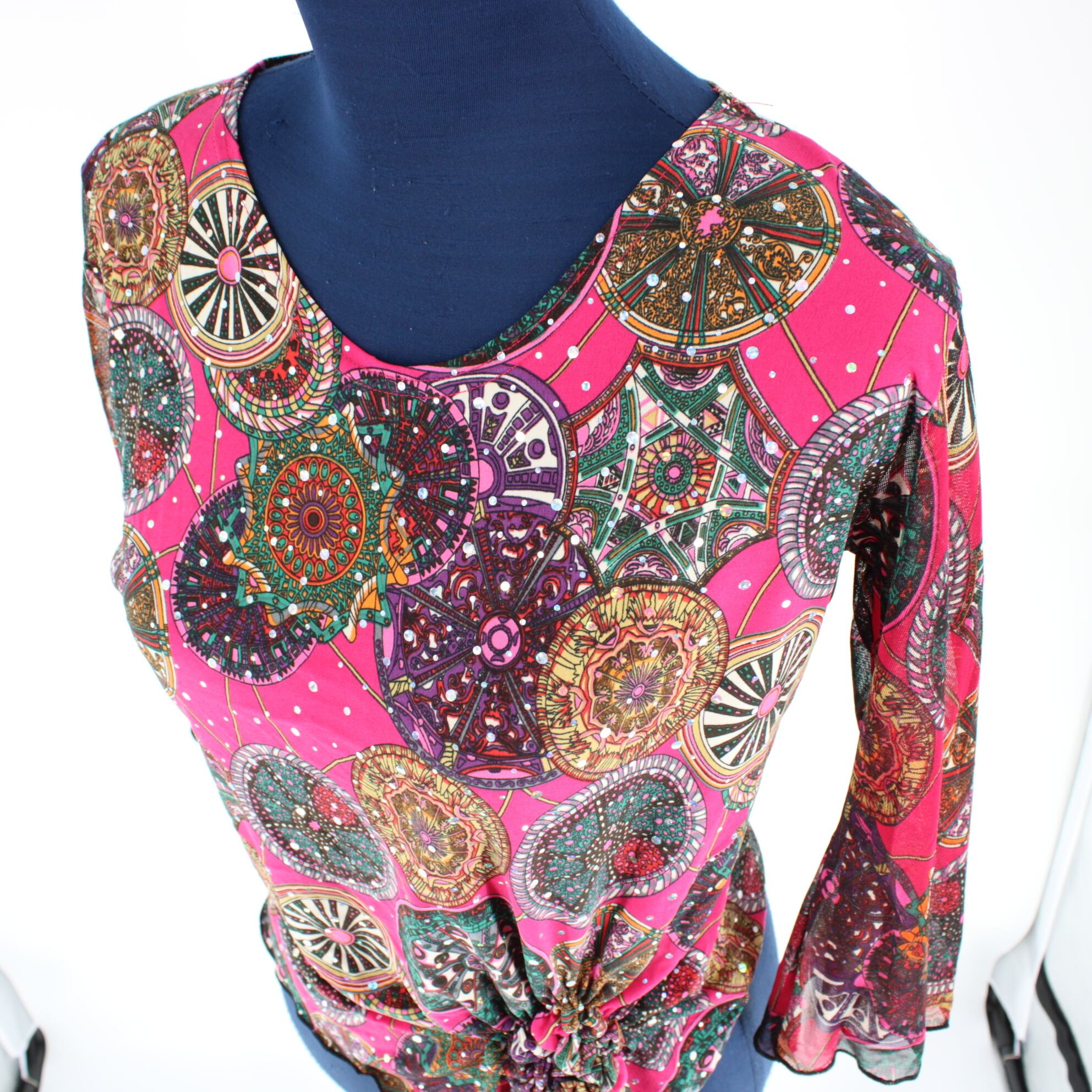【美品 社交ダンス衣装】トップス ACROSS マゼンダピンク ホログラム キラキラ かわいい 可愛い エキゾチック 上品 気品