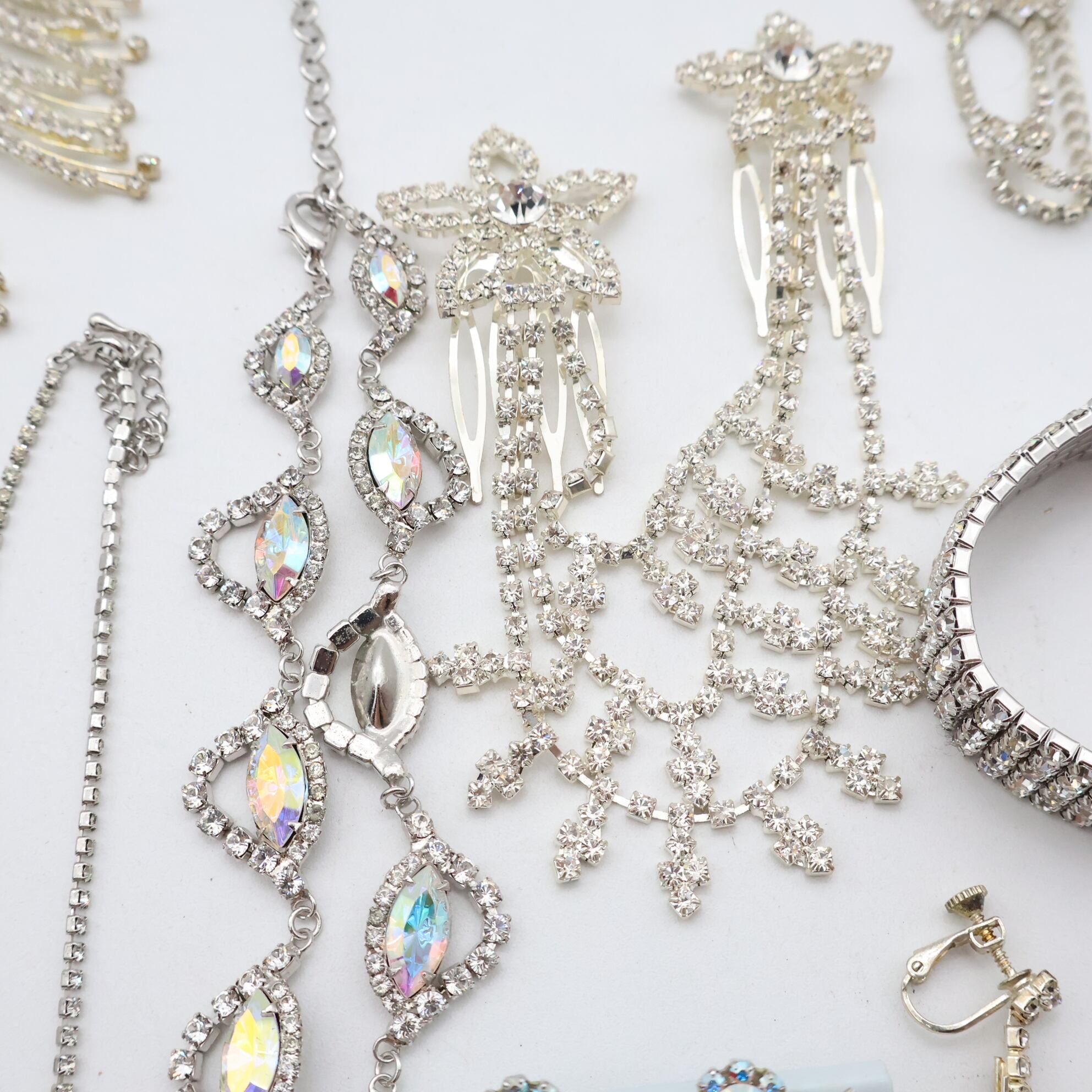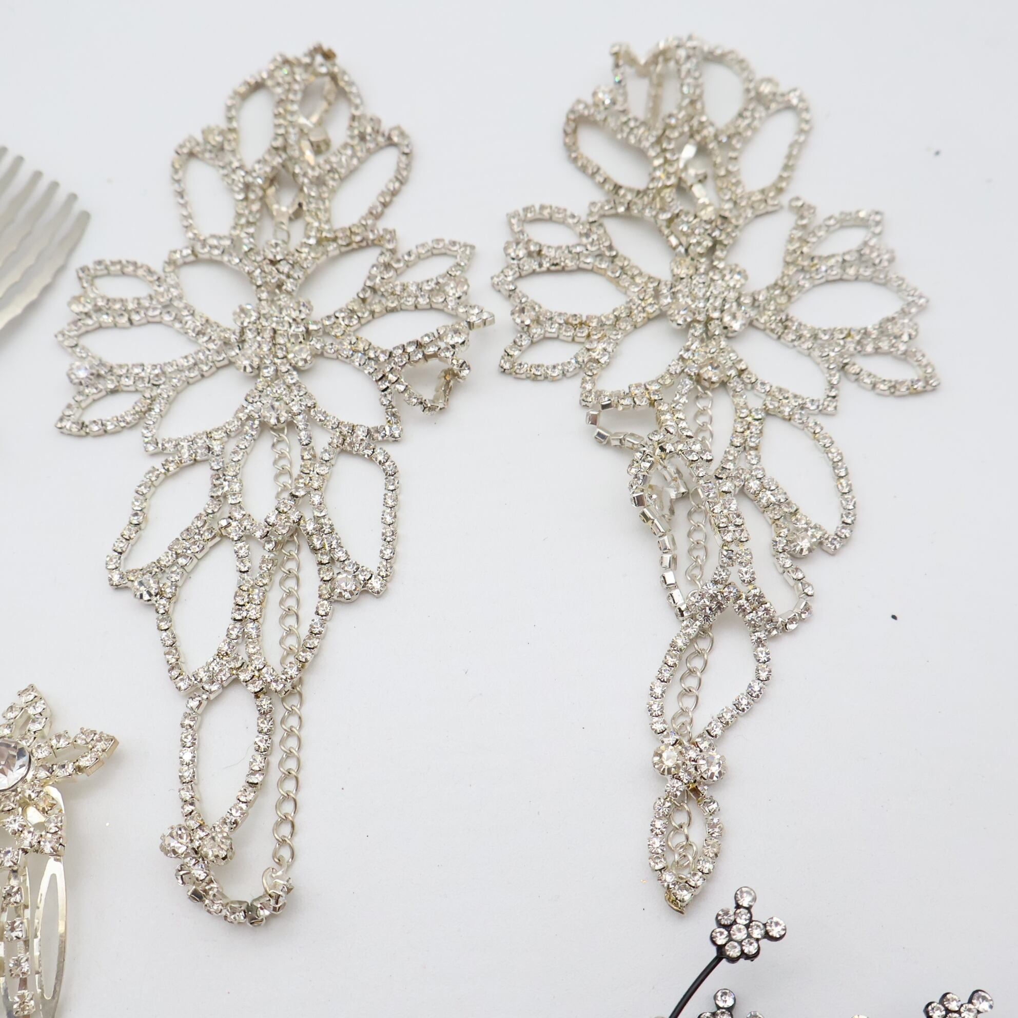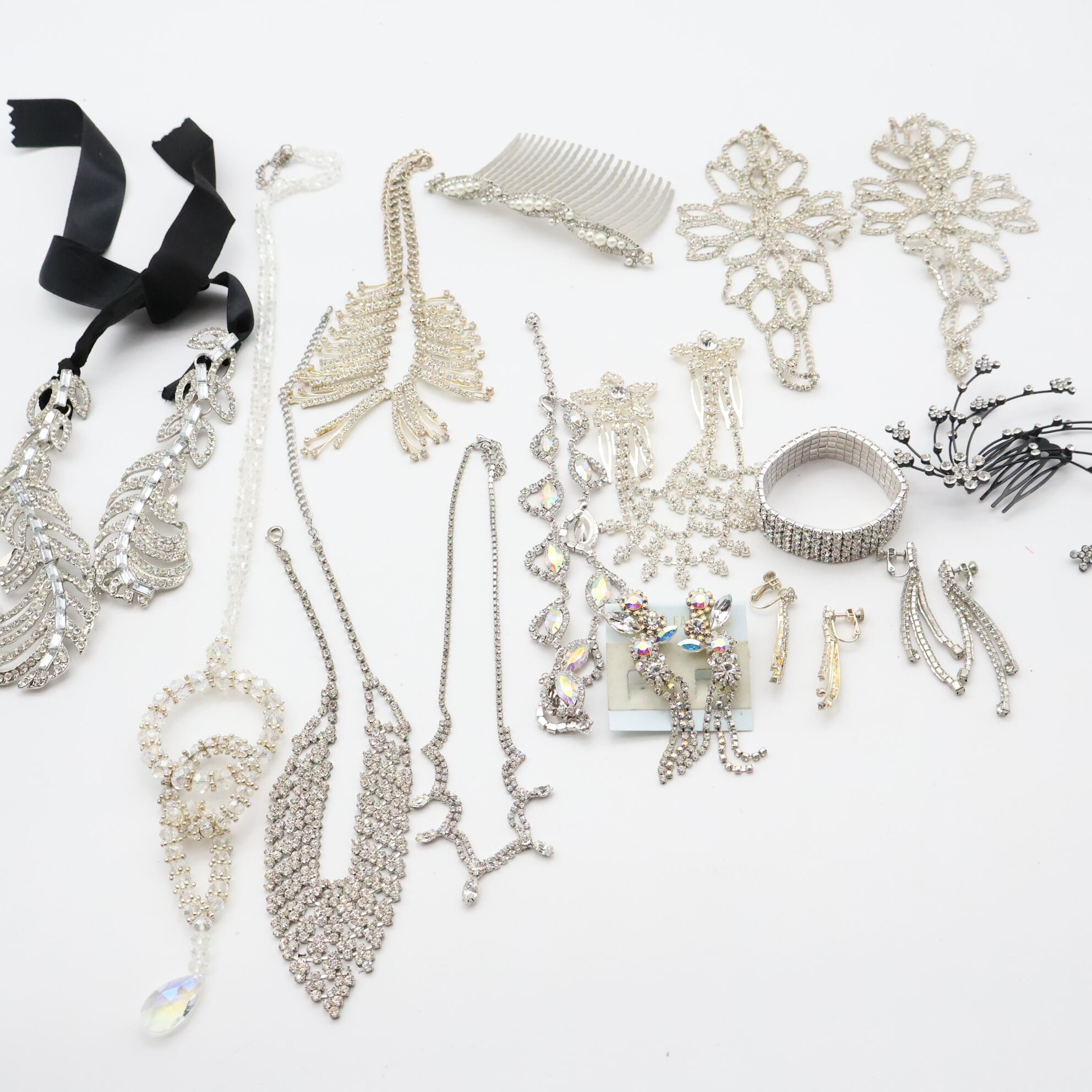 【社交ダンス アクセサリー まとめ売り】全14点 ネックレス ブレスレット イヤリング シルバー 高級感 正装 飾り コーム