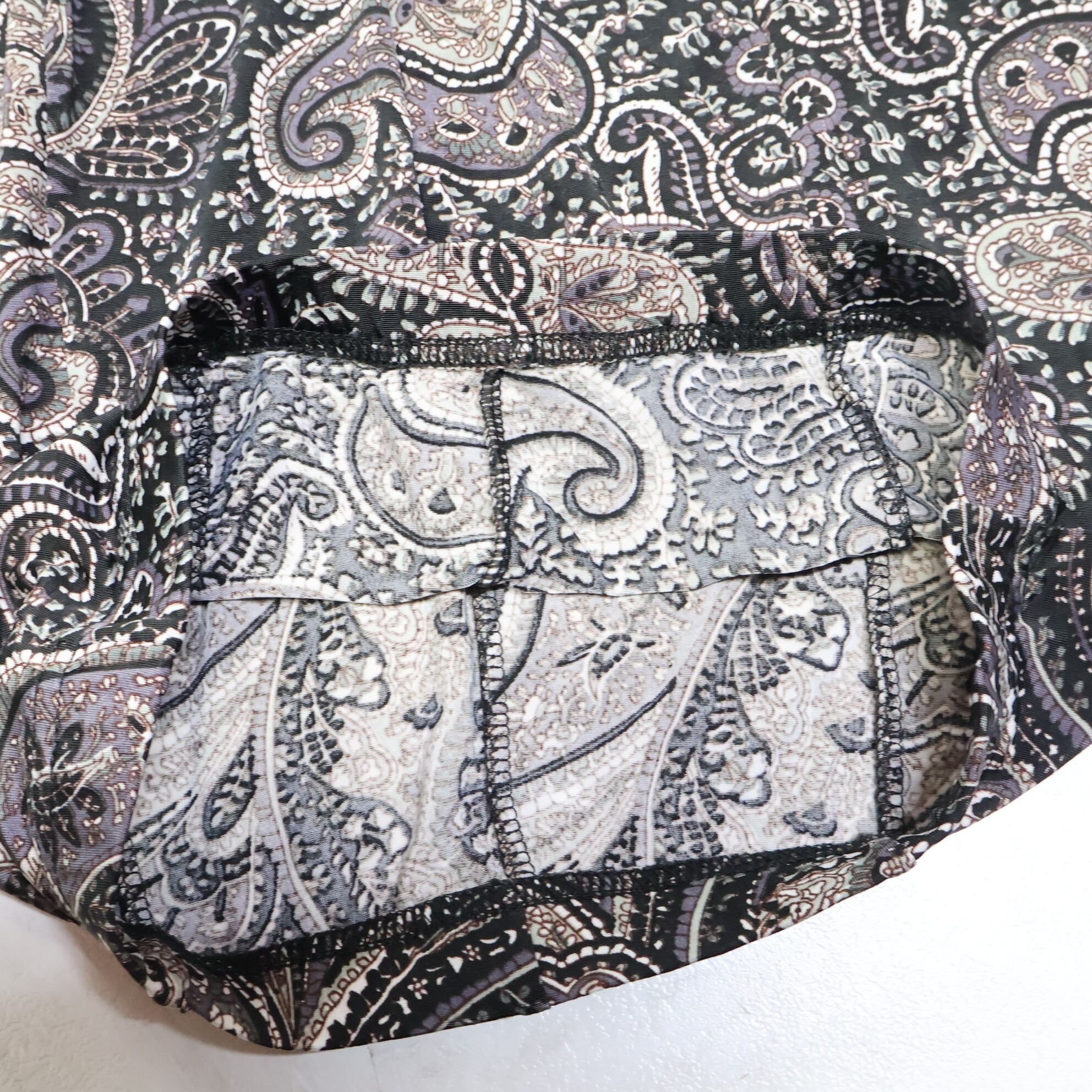 【美品 フラメンコ衣装】グレー ファルダ スカート 伸縮 ペイズリー柄 黒 ブラック 伸縮 薄い 軽い ハイウエスト レッスン