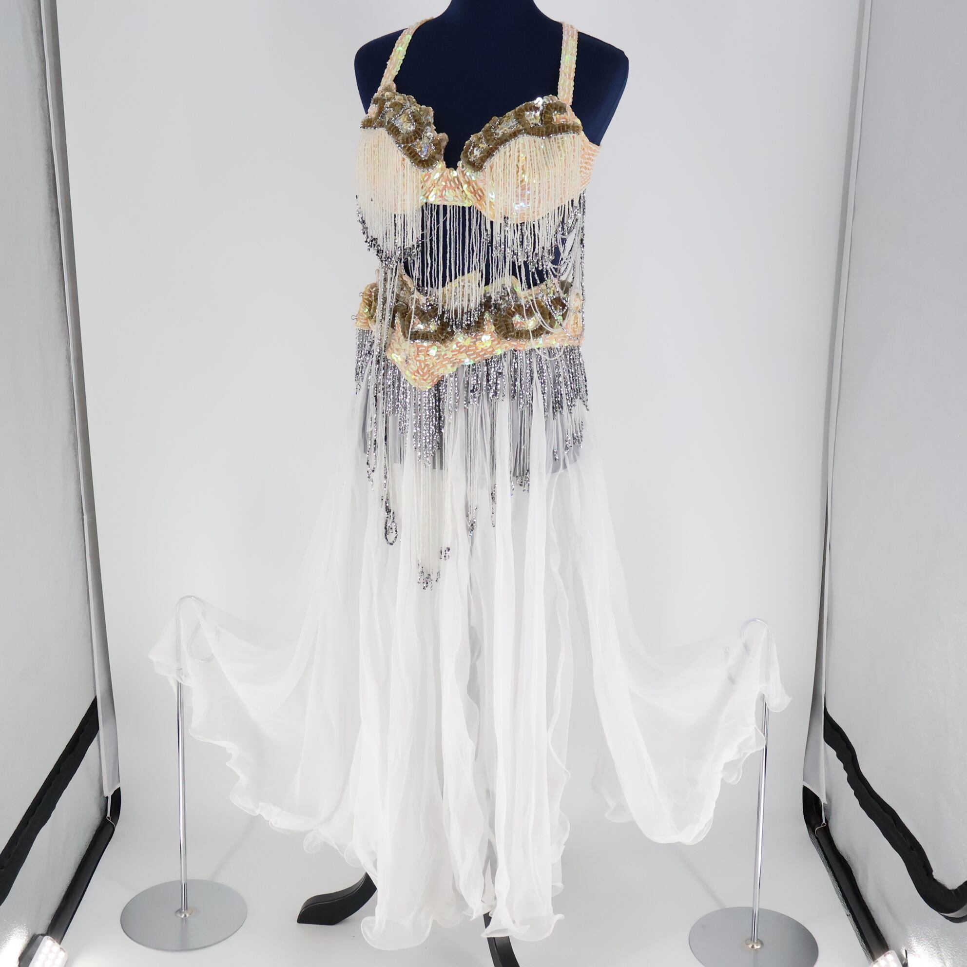 #ベリーダンス #オリエンタル衣装 #ホワイト #アイボリー #ビーズ #スパンコールラメ #白 #ベージュ #シルバー #レース #透け感 #綺麗 #爽やか #豪華 #ふんわり感 #スリット #トップス #ベルト #スカート #アクセサリー #ダンス衣装 #ダンスコスチューム #ステージ衣装 #古着 #中古 #ENUTSU