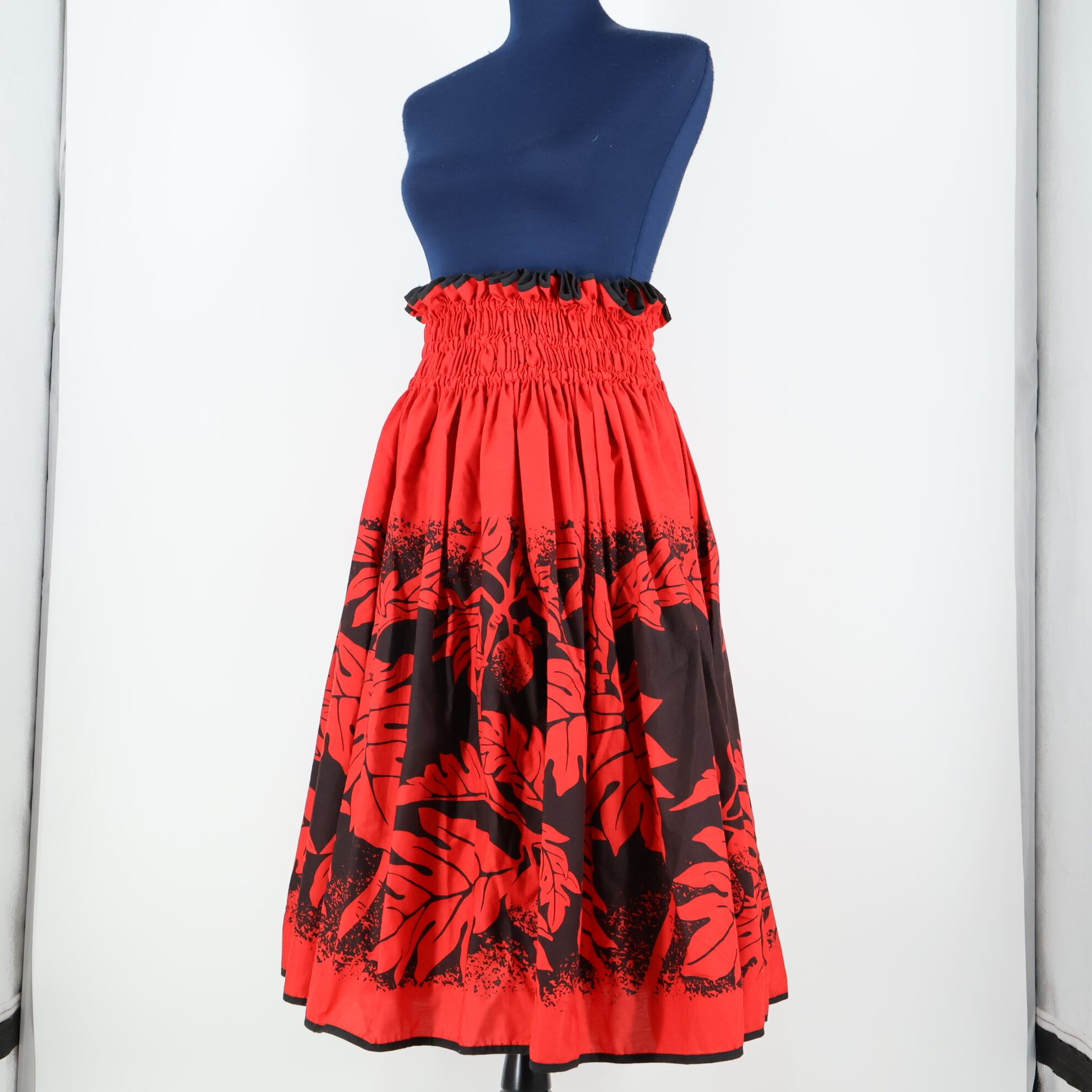 #フラダンス #フラ衣装 #パウスカート #ティオカンパニー #パンの木柄 #ブラック #黒 #レッド #赤 #鮮やか #華やか #ハワイアン #ゴム #ダンス衣装 #ダンスコスチューム #ステージ衣装 #古着 #中古 #ENUTSU