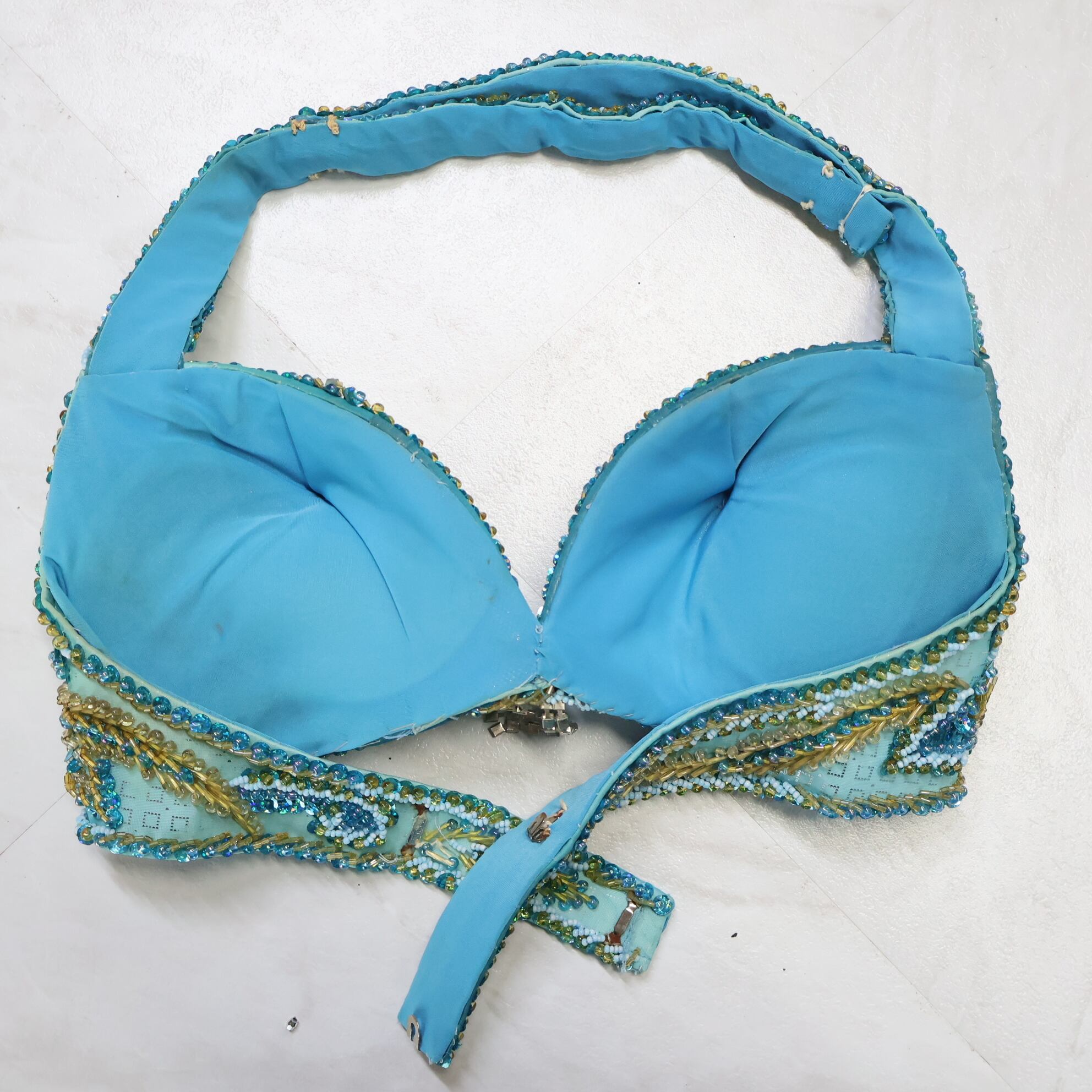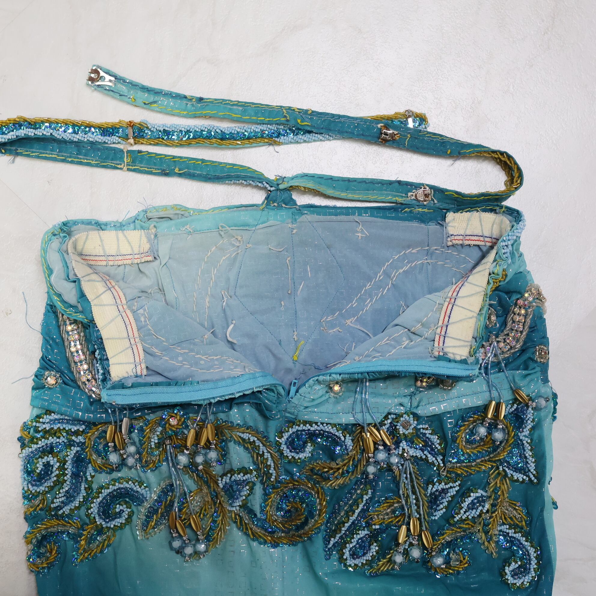 #ベリーダンス #オリエンタル衣装 #水色 #装飾豪華 #ラメ #シルバー #花柄 #光沢 #爽やか #グラデーション #綺麗 #スリット #トップス #スカート #アクセサリーセット #ビーズ #ラインストーン #煌びやか #ダンス衣装 #ダンスコスチューム #ステージ衣装 #古着 #中古 #ENUTSU