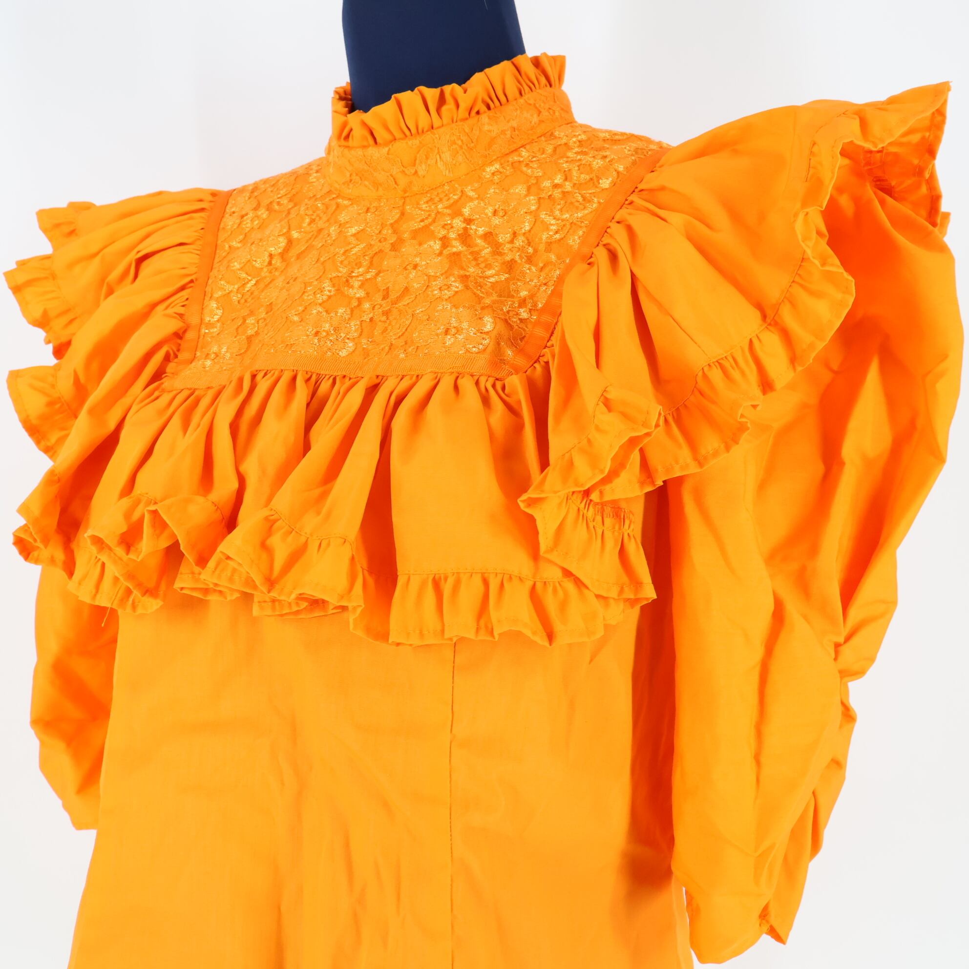 【美品 ハワイ製 フラダンス衣装】オレンジ Pukalani Fashion トップス ブラウス フリル レース 華やか 鮮やか アロハ 可愛い