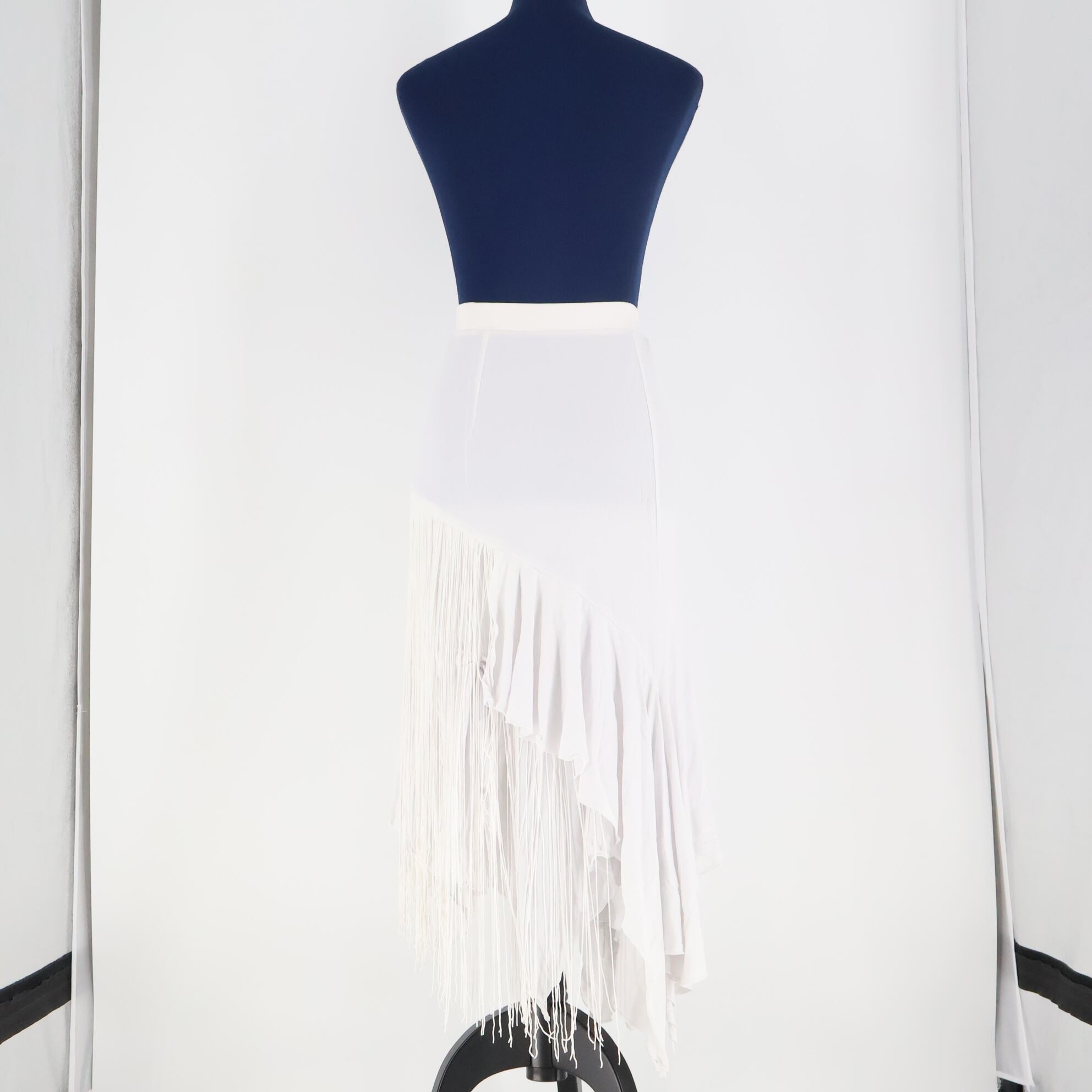 【日本製 社交ダンス衣装】ホワイト Chacott チャコット ラテン スカート 白 無地 フリンジ アシンメトリー レッスン 練習着