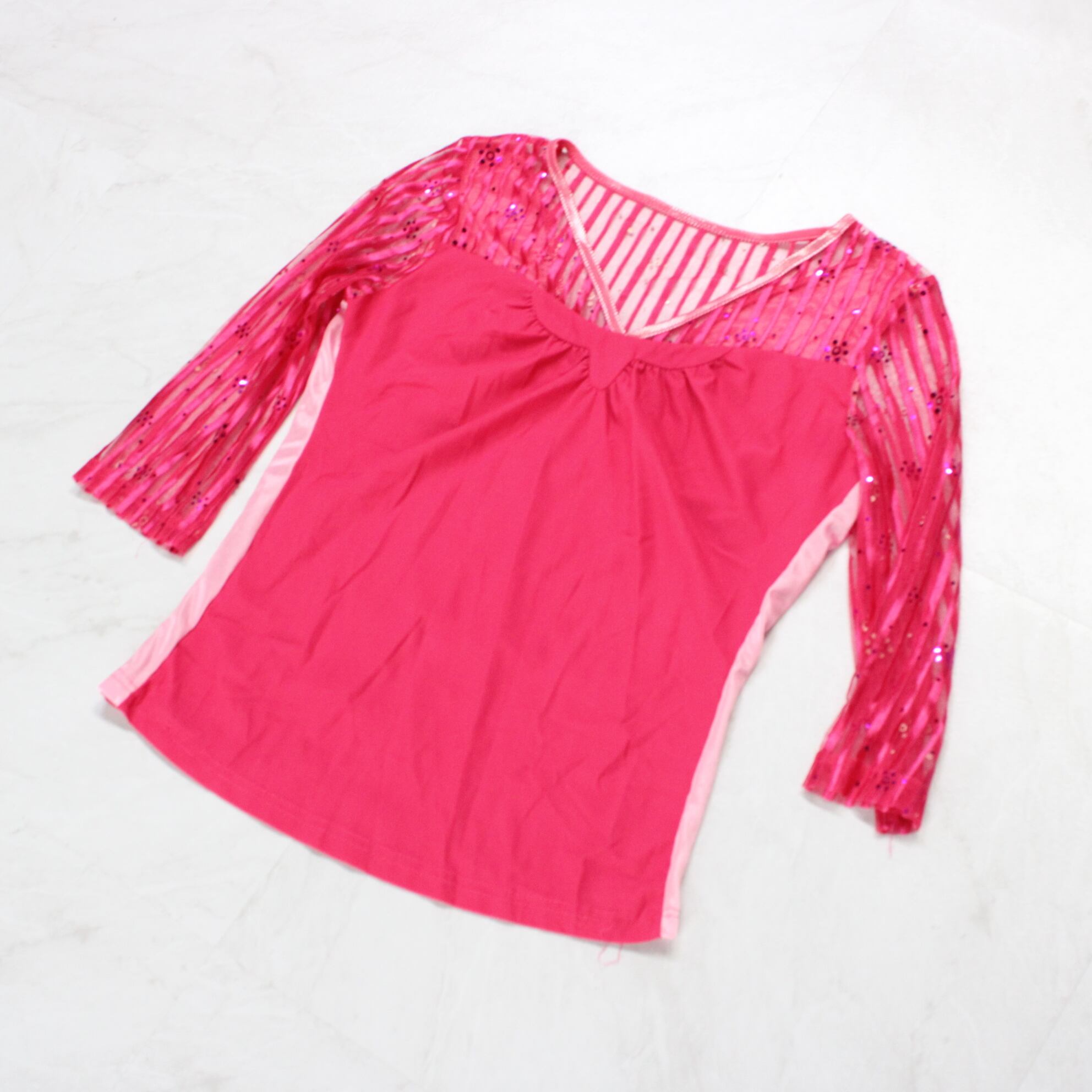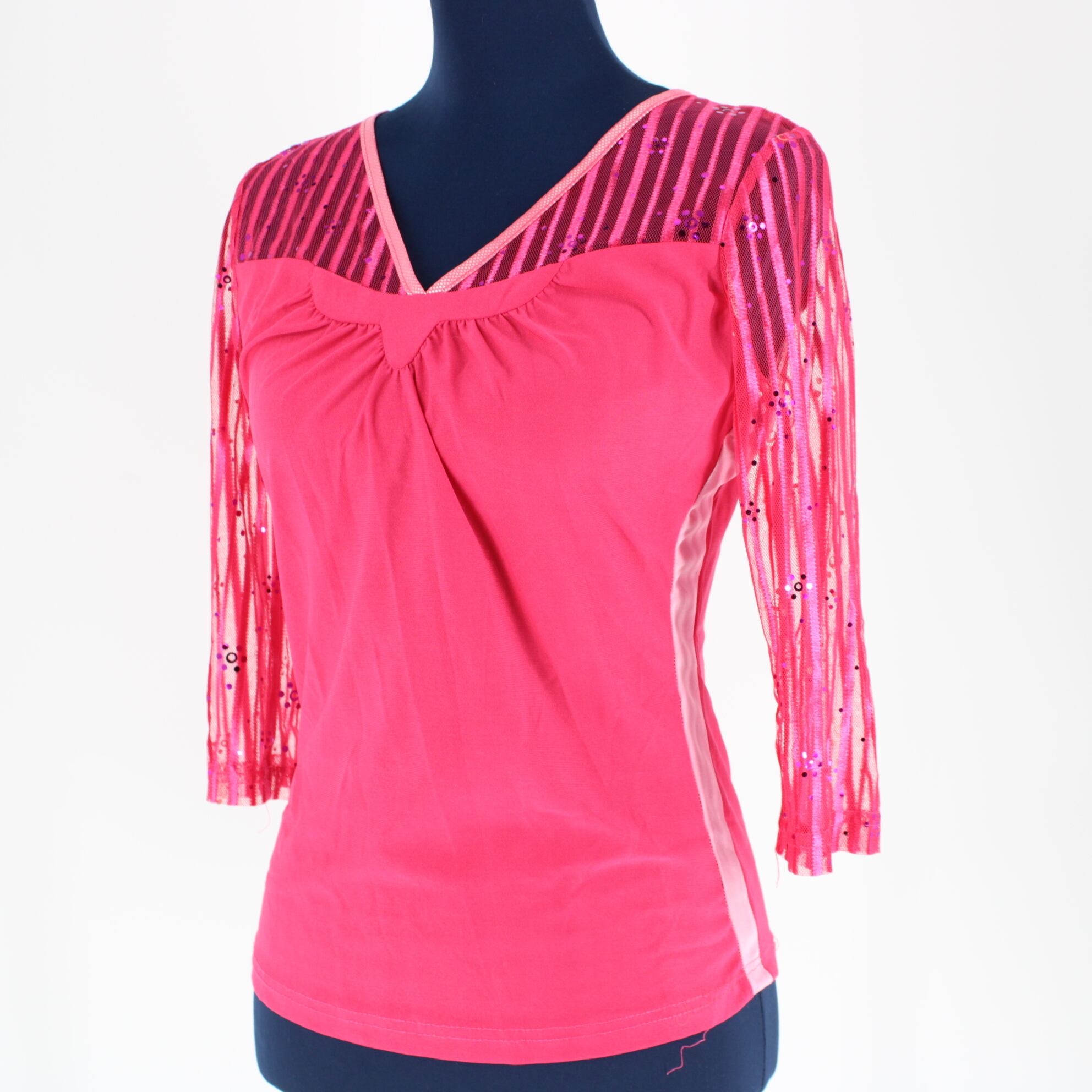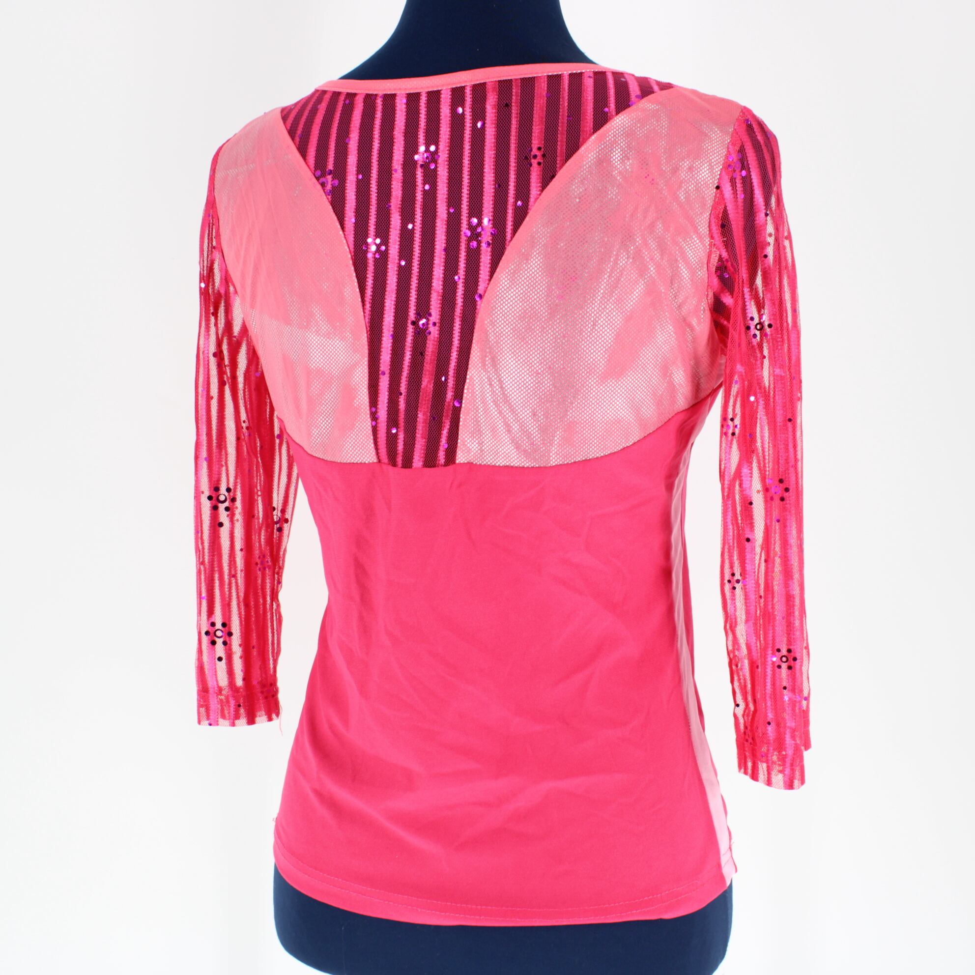 【美品 社交ダンス衣装】トップス マゼンダ ピンク 鮮やか レース 透け感 かわいい 可愛い 上品 気品 清楚 シック クラシカル