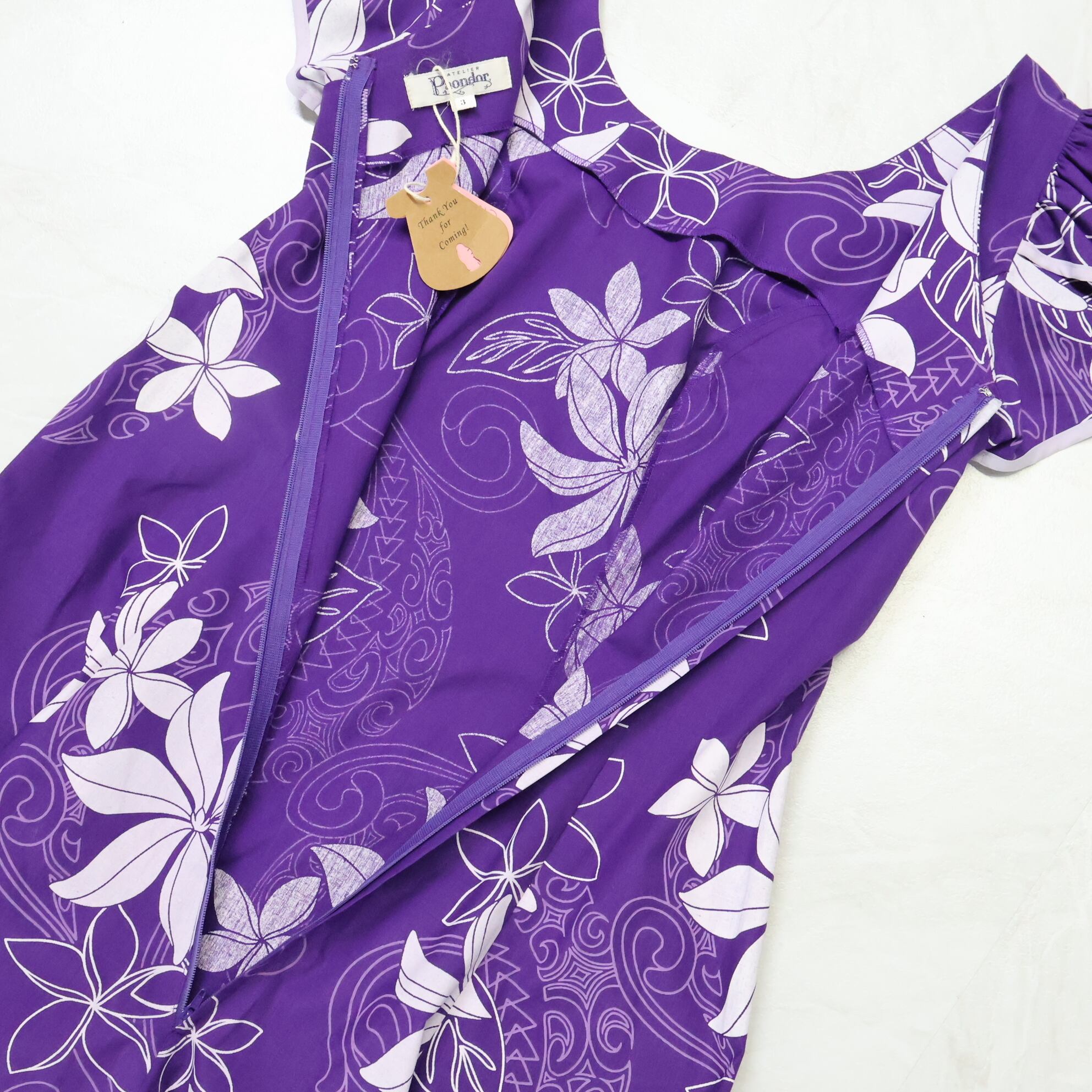#フラダンス #ワンピースドレス #ティアレ柄 #パープル #ホワイト #紫 #白 #花柄 #鮮やか #エレガントスタイル #フラガール #リゾートコーデ #アロハファッション #南国スタイル #フラ衣装 #ダンス衣装 #ダンスコスチューム #ステージ衣装 #古着 #中古 #ENUTSU