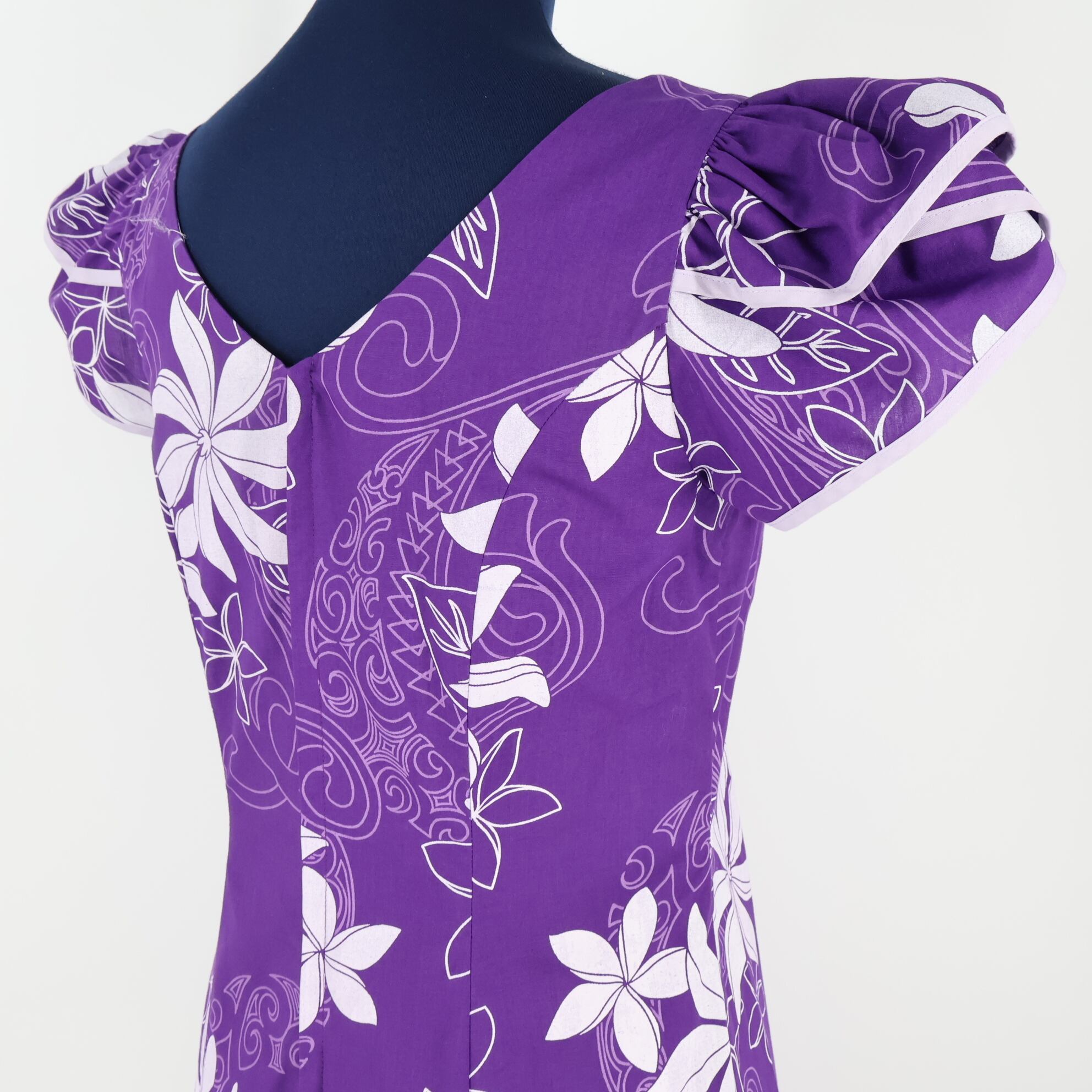 【日本製 フラダンス衣装】パープル Paondor パンドール ワンピース ドレス ティアレ柄 ホワイト 白 紫 花柄 鮮やか かわいい