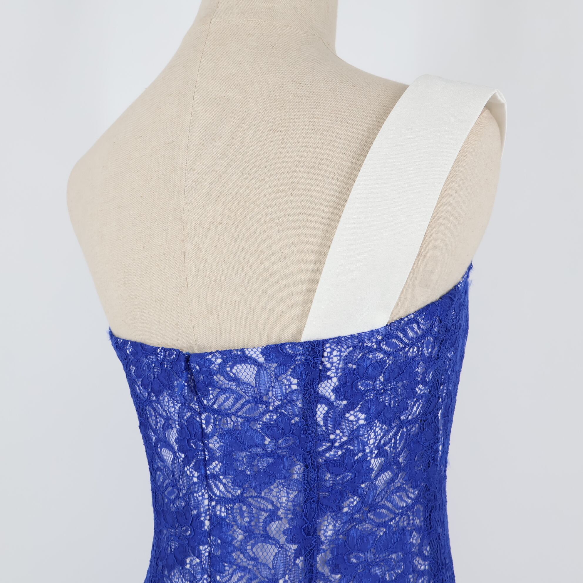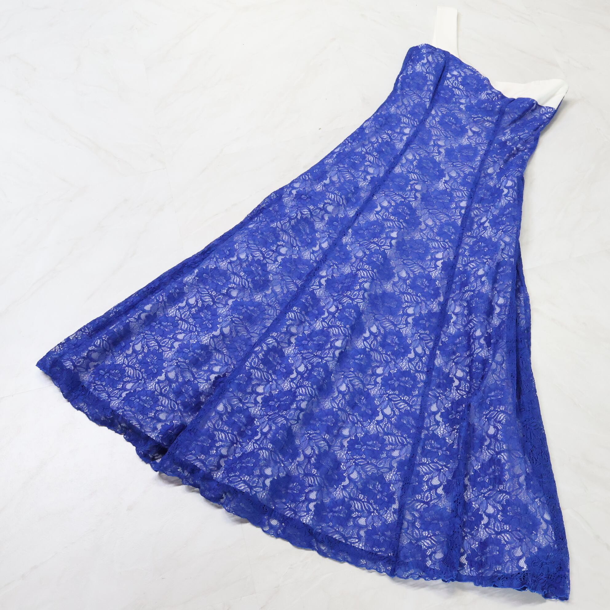 【美品 日本製 フラダンス衣装】ブルー Paondor パンドール ワンピース ドレス 青 白 レース 花柄 ホワイト 華やか かわいい