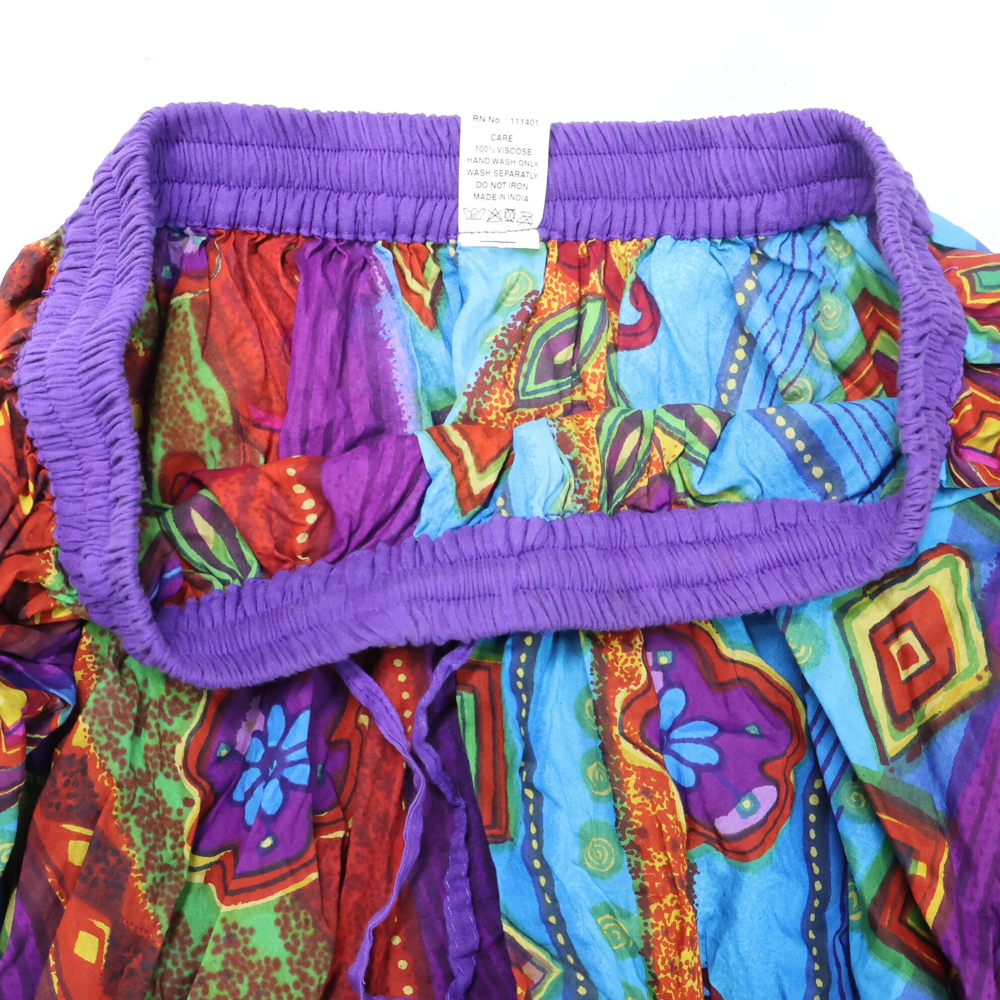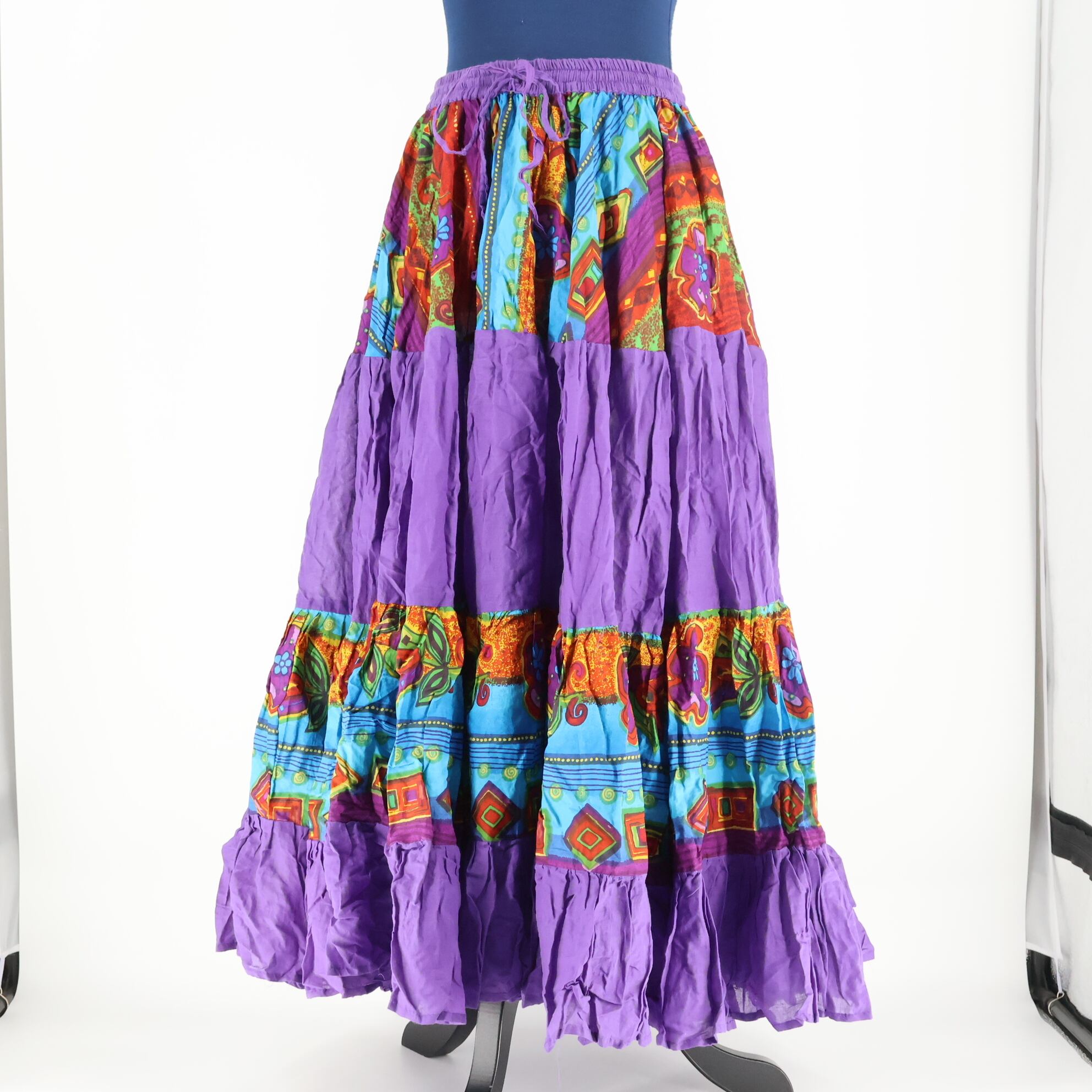 #ベリーダンス #ジプシースカート #インド製 #パープル #水色 #オレンジ #MYST #ボリューム #フリル #異国情緒 #鮮やか #柄 #ロングスカート #広がる裾 #華やか #ダンス衣装 #ダンスコスチューム #ステージ衣装 #古着 #中古 #ENUTSU