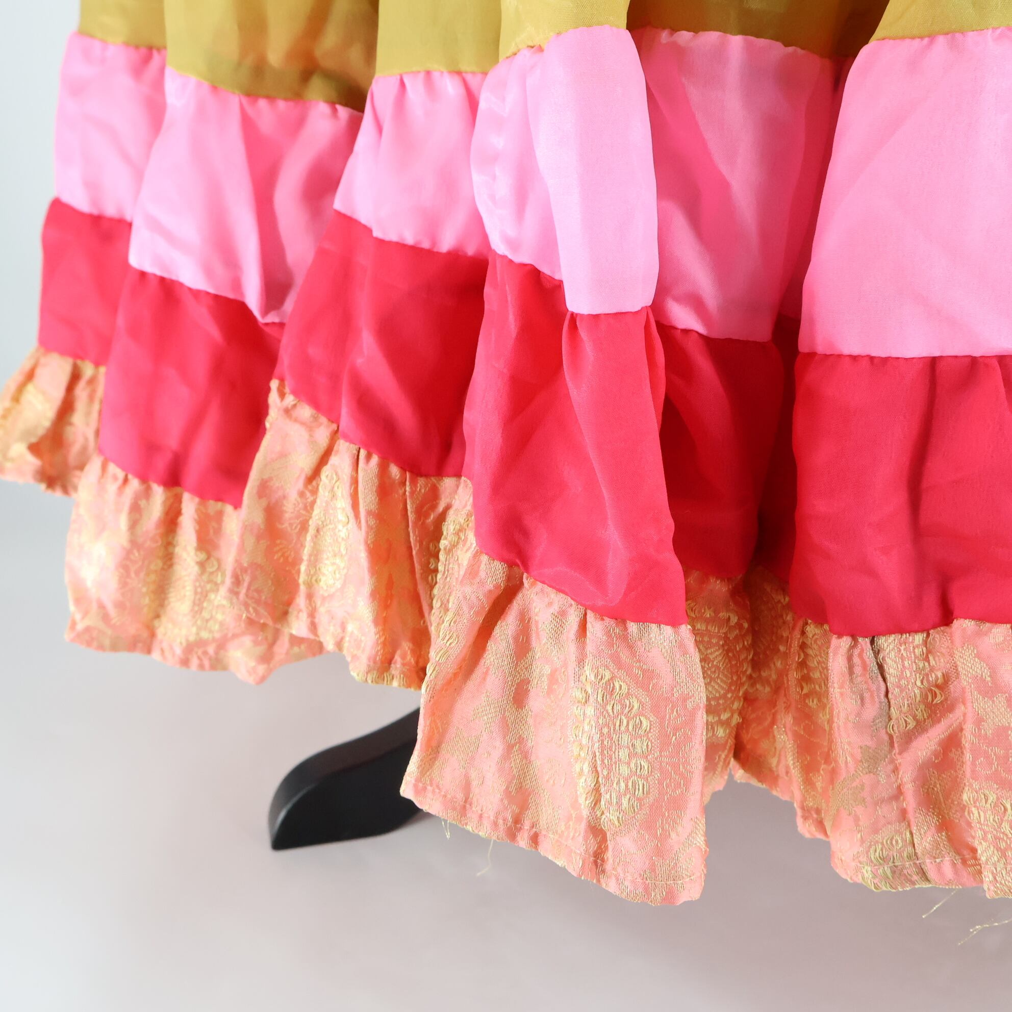 #ベリーダンス #ジプシースカート #インド製 #ピンク #黄緑色 #ボリューム #フリル #異国情緒 #ロングスカート #Sサイズ #可愛い #明るい #レース #女性らしい #鮮やか #広がる裾 #ダンス衣装 #ダンスコスチューム #ステージ衣装 #古着 #中古 #ENUTSU